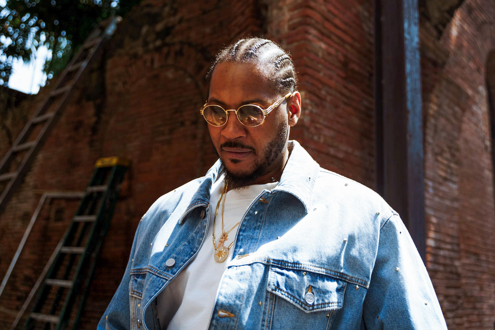 “I told him he might wanna change but he wouldn’t take it off,” says his personal stylist of almost 15 years, Khalilah Williams-Webb. Khalilah has been dressing Melo since 2008 and says that Melo isn’t one to go with trends if it doesn’t suit him. Literally.
