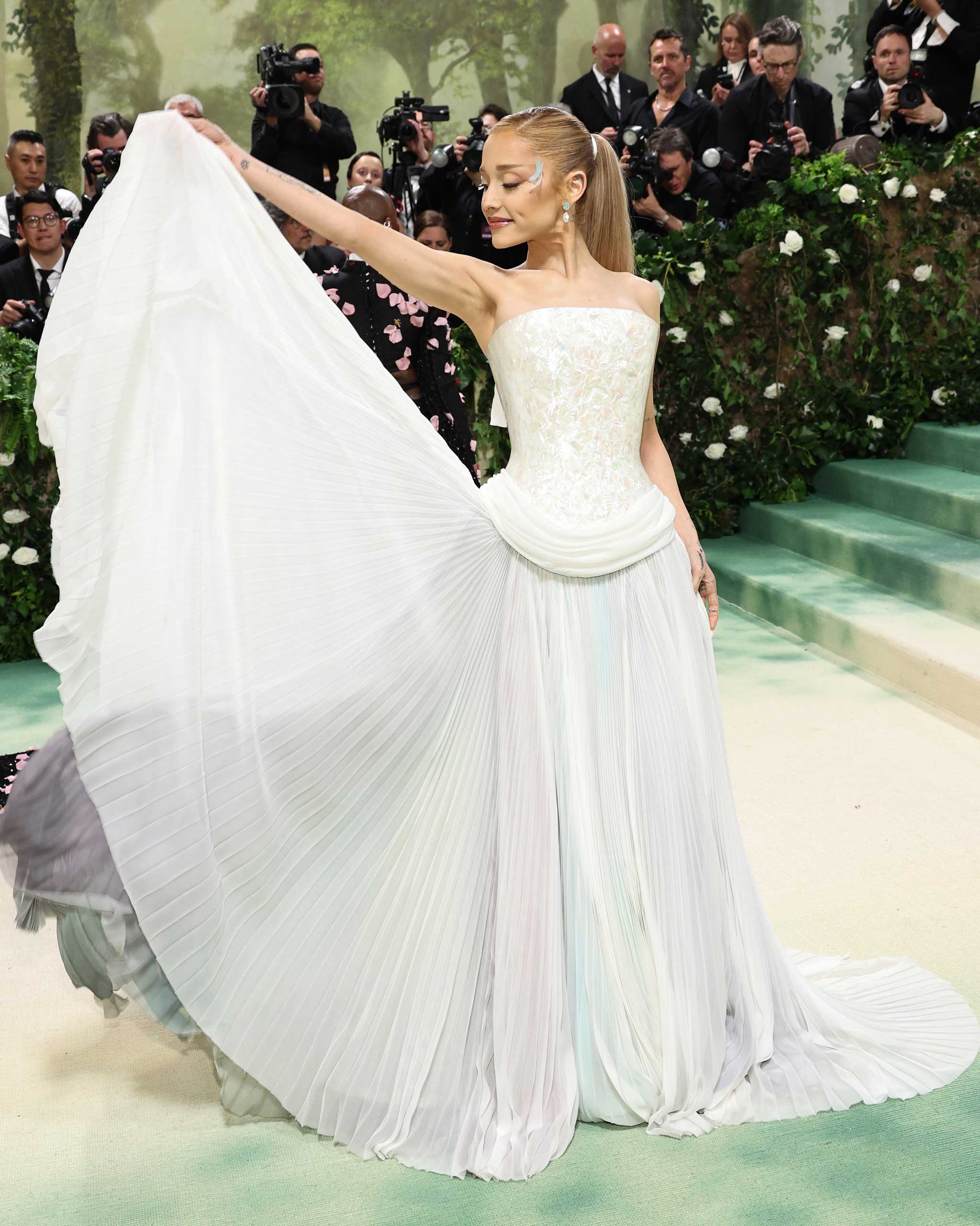 This evening marked Grande’s second time attending the Met Gala. The last time Grande attended was in 2018, for the “Heavenly Bodies” theme. That year, the singer sported a custom Vera Wang gown that was screen-printed with imagery from Michelangelo’s “The Last Judgement.” Tonight, she went the more light, breezy route—and secured her spot as one of the night’s best dressed attendees.