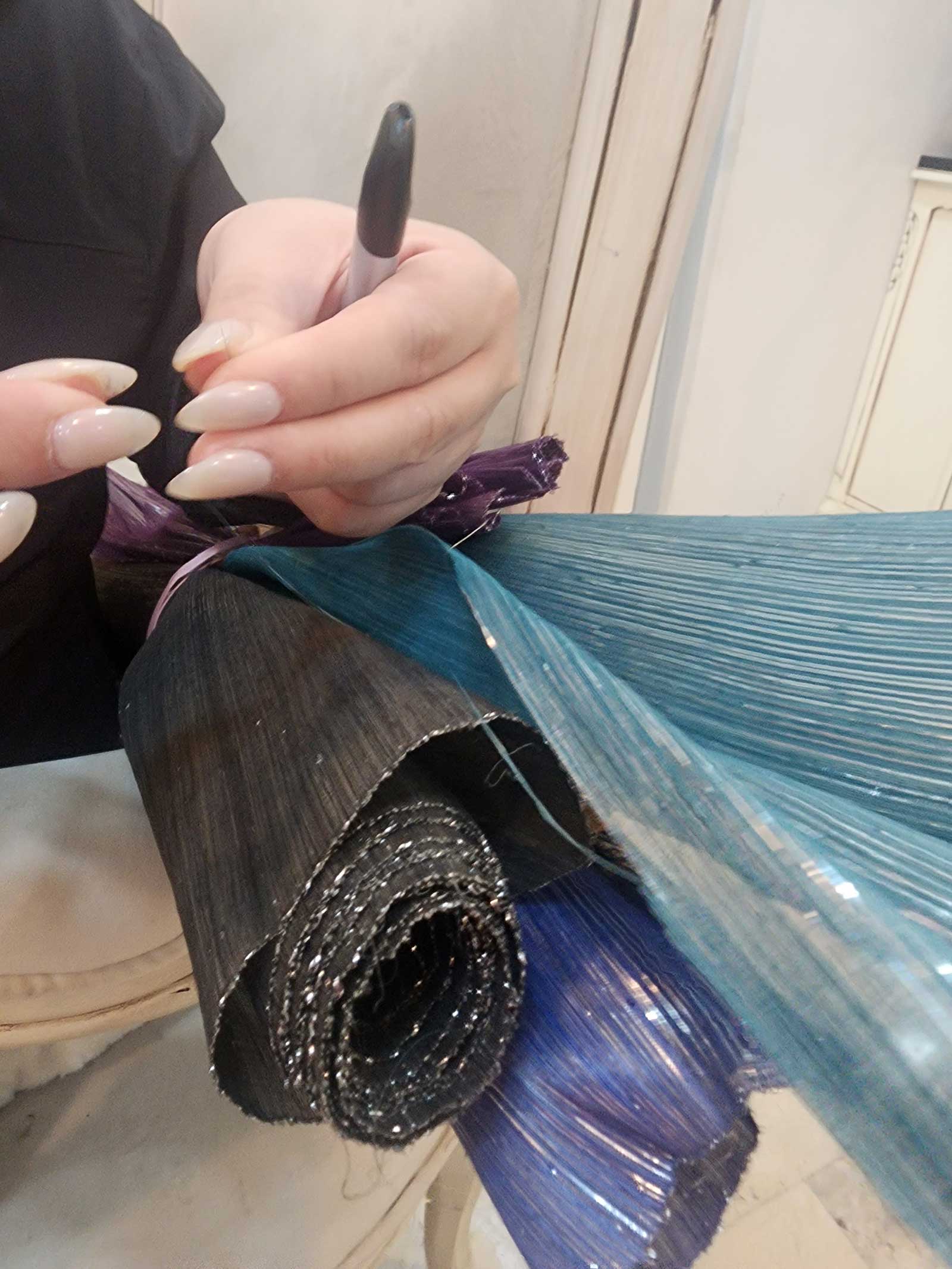 Each member of the boy group don black and blue in different necklines by designer Ehrran Montoya on the red carpet. The designer incorporated subtle Filipino touches into the ensembles using scrap abaca fabrics and threads. “The designs aim to highlight Filipino artistry and craftsmanship, aligning with the core objective of promoting the PPOP Rise and representing the Filipino flag on the international stage,” the designer says. “The result is a stunning showcase of Filipino heritage, interpreted in a fresh and understated way. “