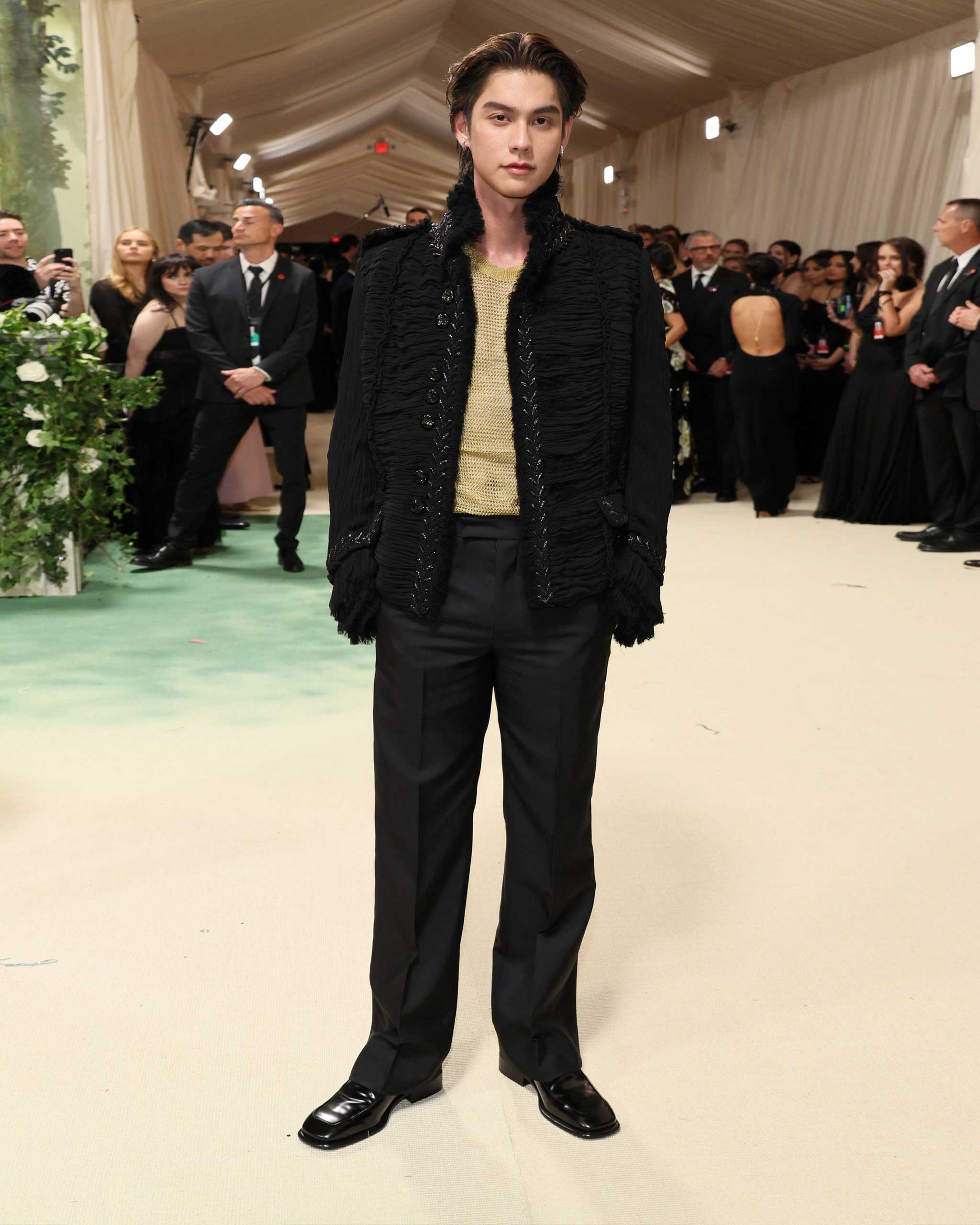 Born in Thailand, Bright is already a well-established name in Asia, where he recently made headlines for confirming his relationship with the singer Nene (née Pornnappan Pornpenpipat). But given his Met debut on Monday night, his profile is sure to rise in the United States, too–and this Burberry ’fit bodes well for bright skies ahead.