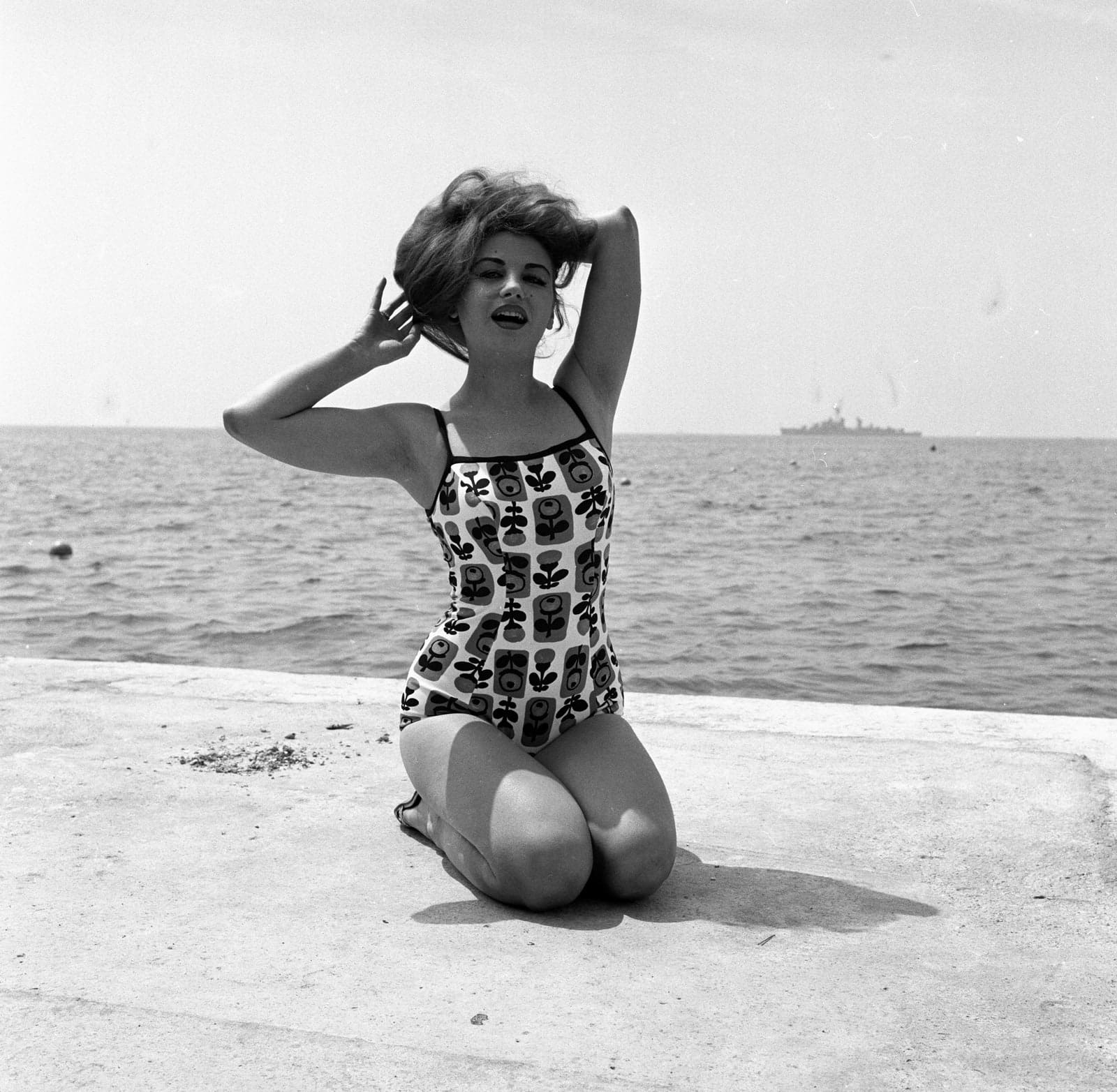 Maria Luz in a printed maillot, 1963. Photo: Daniel Fallot / INA via Getty Images
