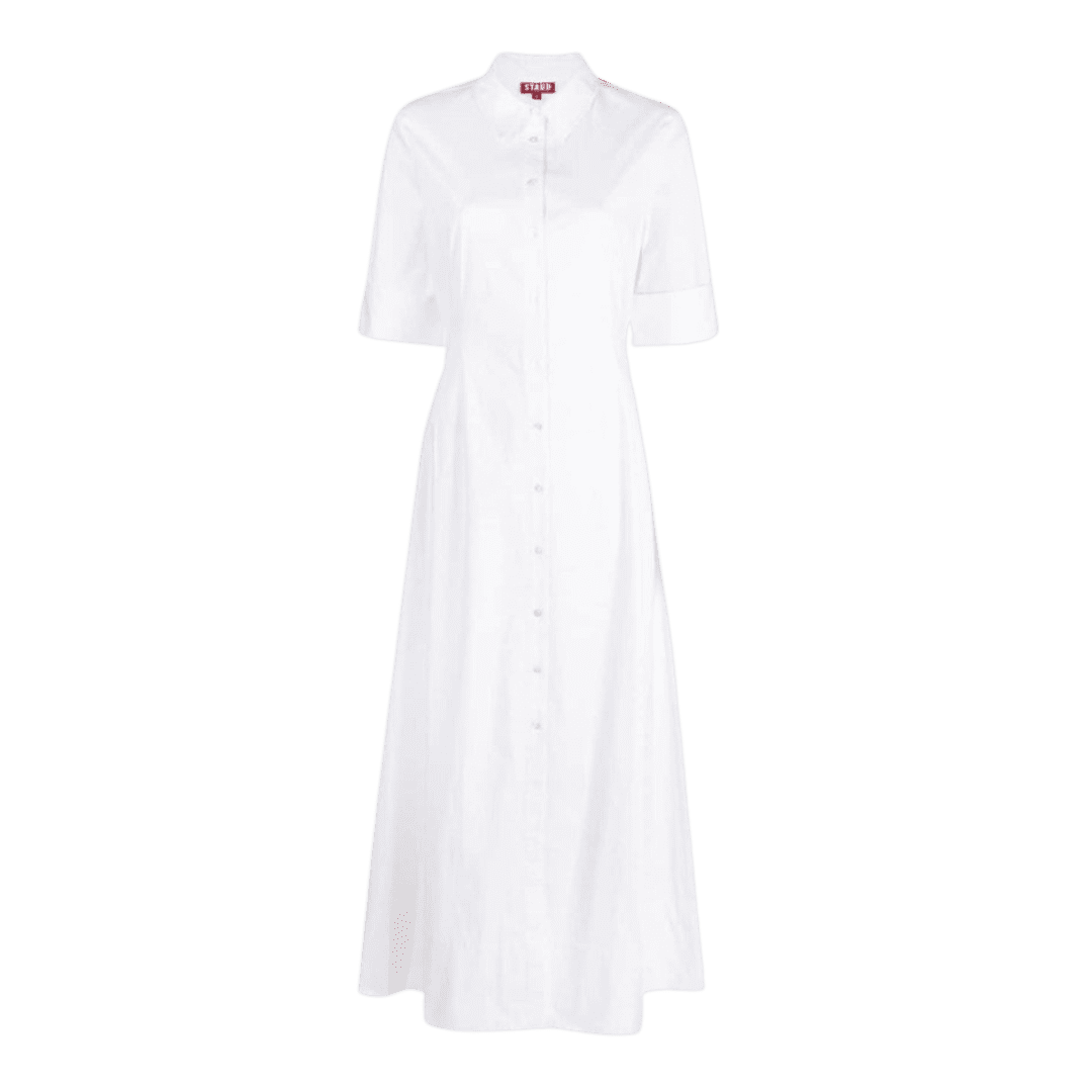 Is it really summer if you don’t have at least one white dress in your closet? The classic shirtdress is always dependable and can be zhuzhed up with platform heels and a coordinating belt and bag.