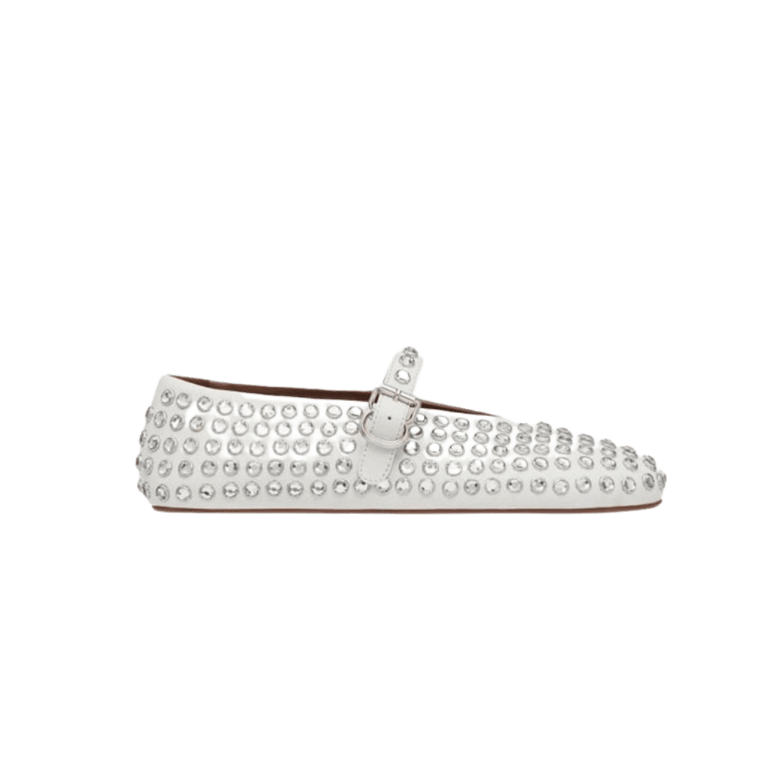 Mix mellow pastels to create a look that’s sure to be a sartorial success—but don’t stop there. Add a pair of crystal-embellished flats for the ultimate cool-girl stamp of approval.