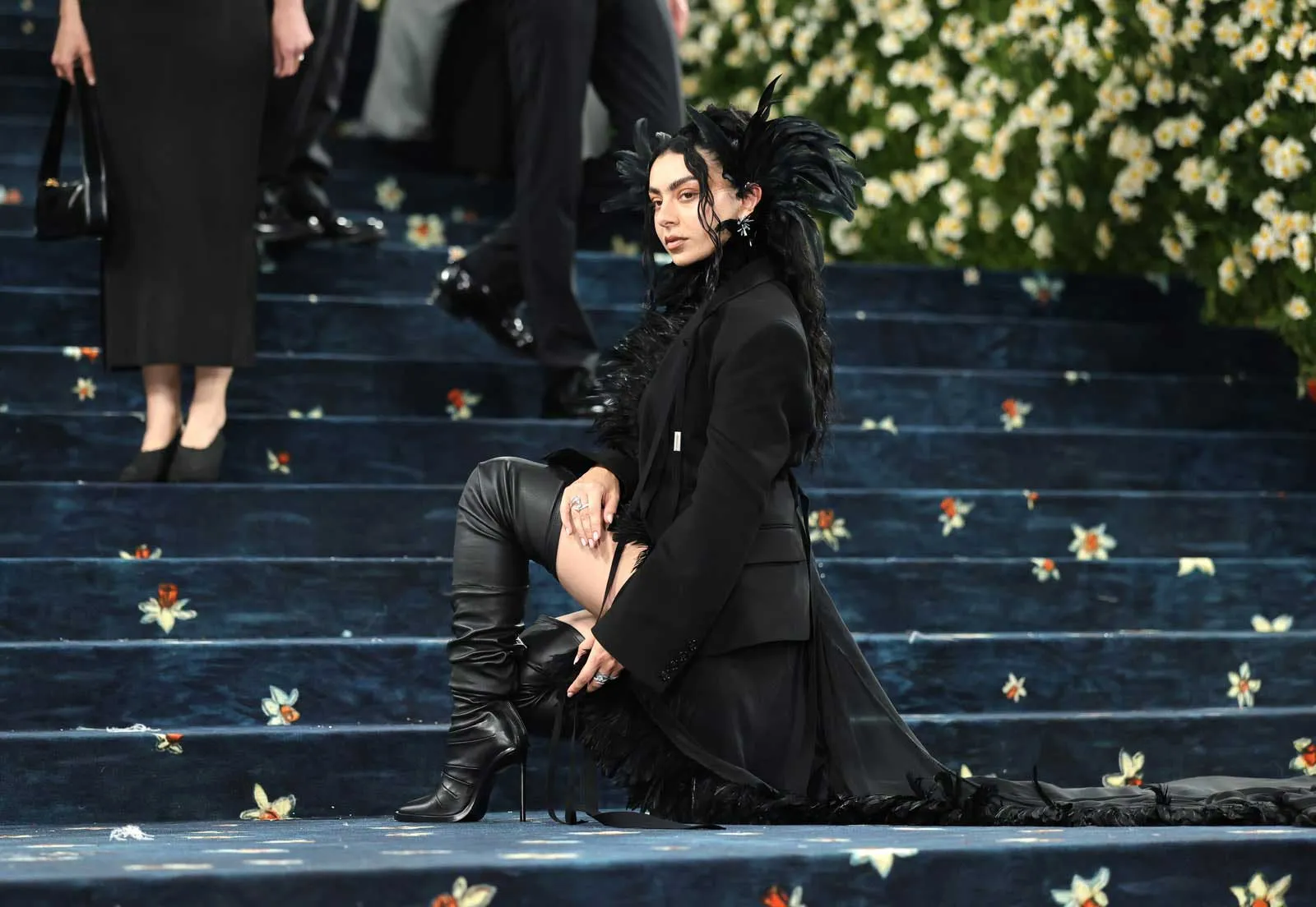 It’s been a big week for Charli XCX. The pop star has taken over New York City with four sold-out shows at the Barclays Center, marking the conclusion of her US arena tour—and, very possibly, the end of everything Brat. But tonight, she stepped out on the red carpet of the 2025 Met Gala channeling a spirit of theatrical Gothic glamour in Ann Demeulemeester designed by Stefano Gallici, with jewelry by Bucherer. (If anyone could rally for a red carpet event after four nights of performing, it would be the O.G. 365 party girl.)