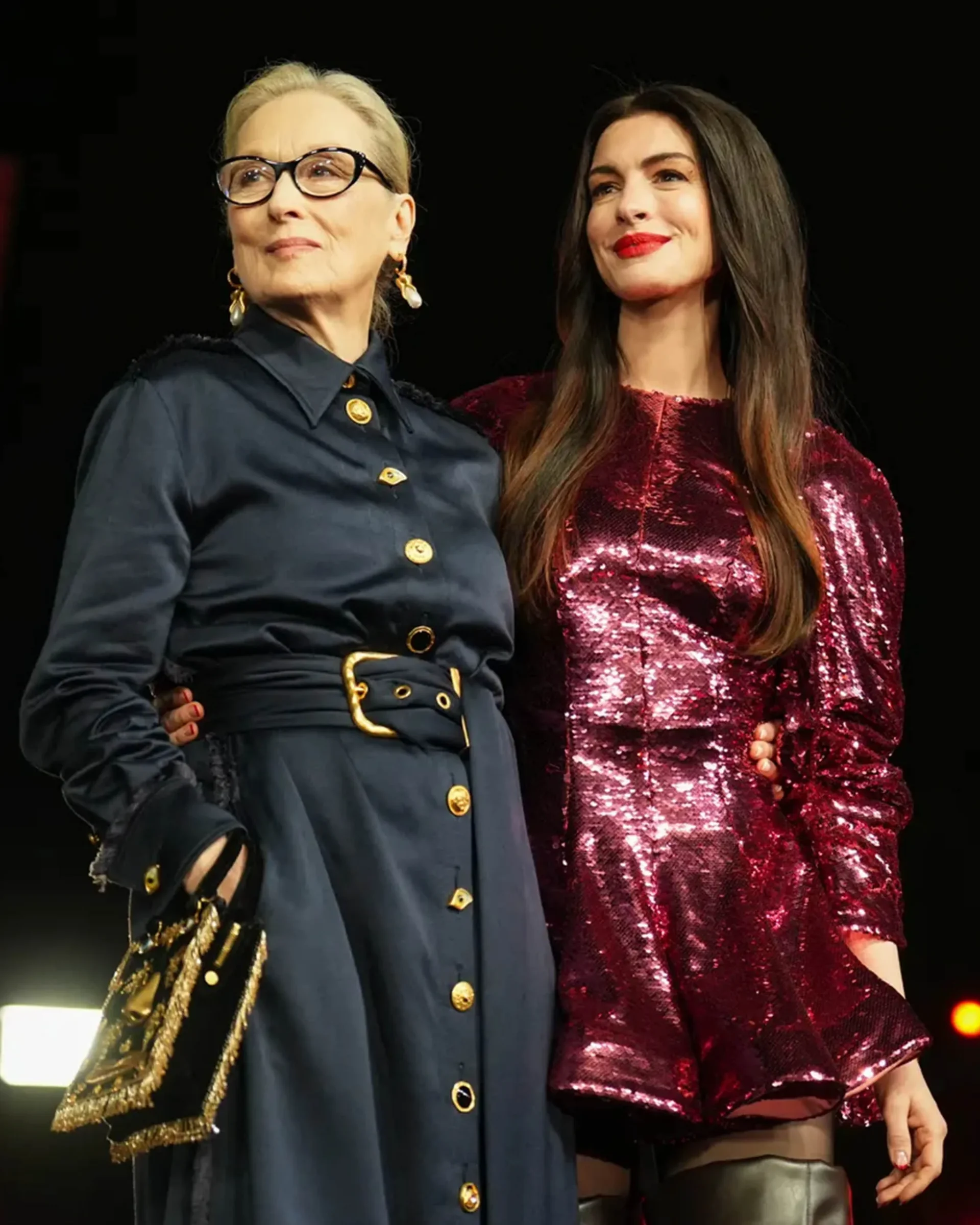 Meryl Streep in Schiaparelli and Anne Hathaway in Stella McCartney Photo: Getty Images