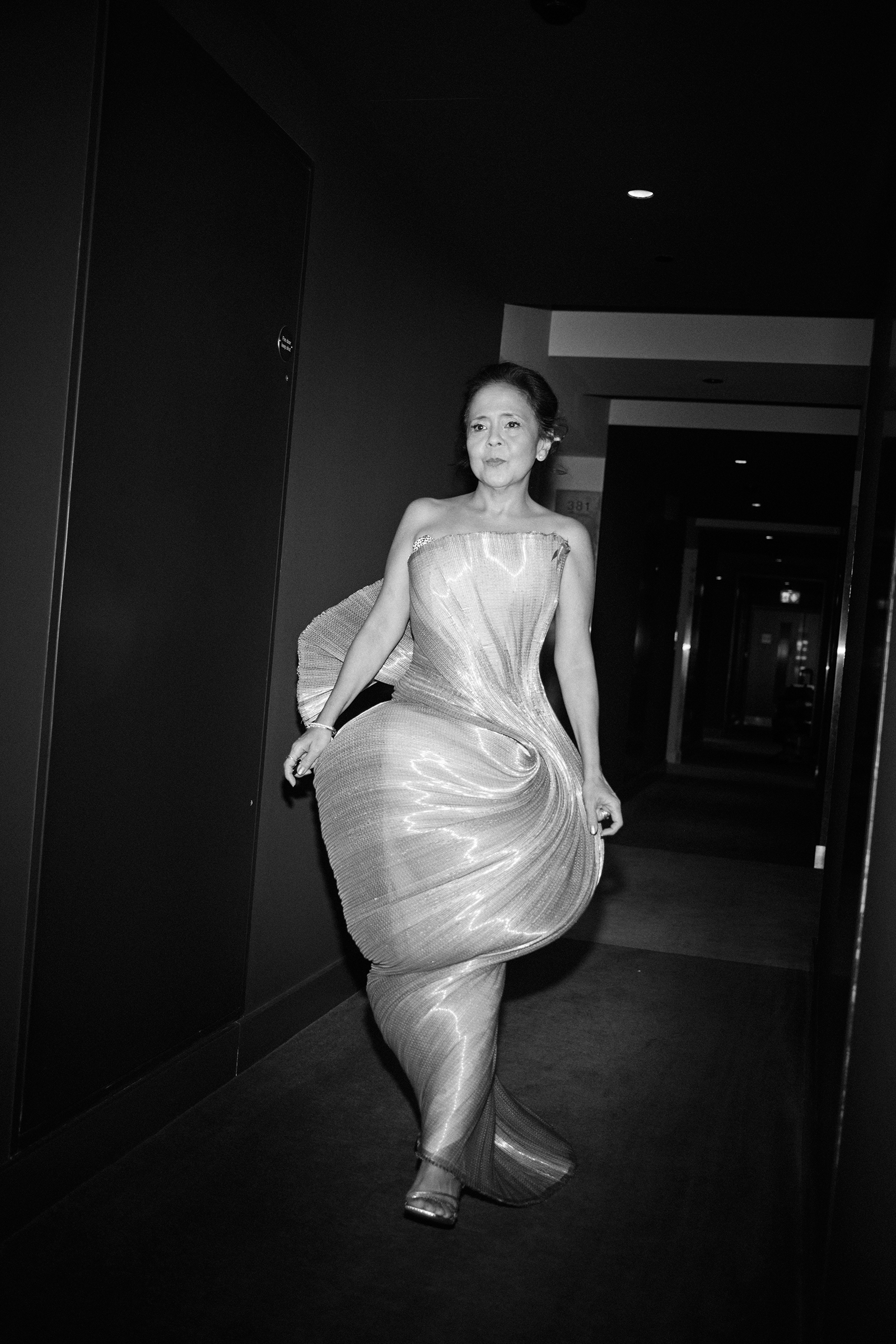 Perez tells us that for this look, the team decided to highlight the actress’ fluidity and femininity. “I want her to look like she’s levitating like some divine magic brought her to where she is now. We both think it’s a fun, playful contrast to what we did at the Golden Globes.”