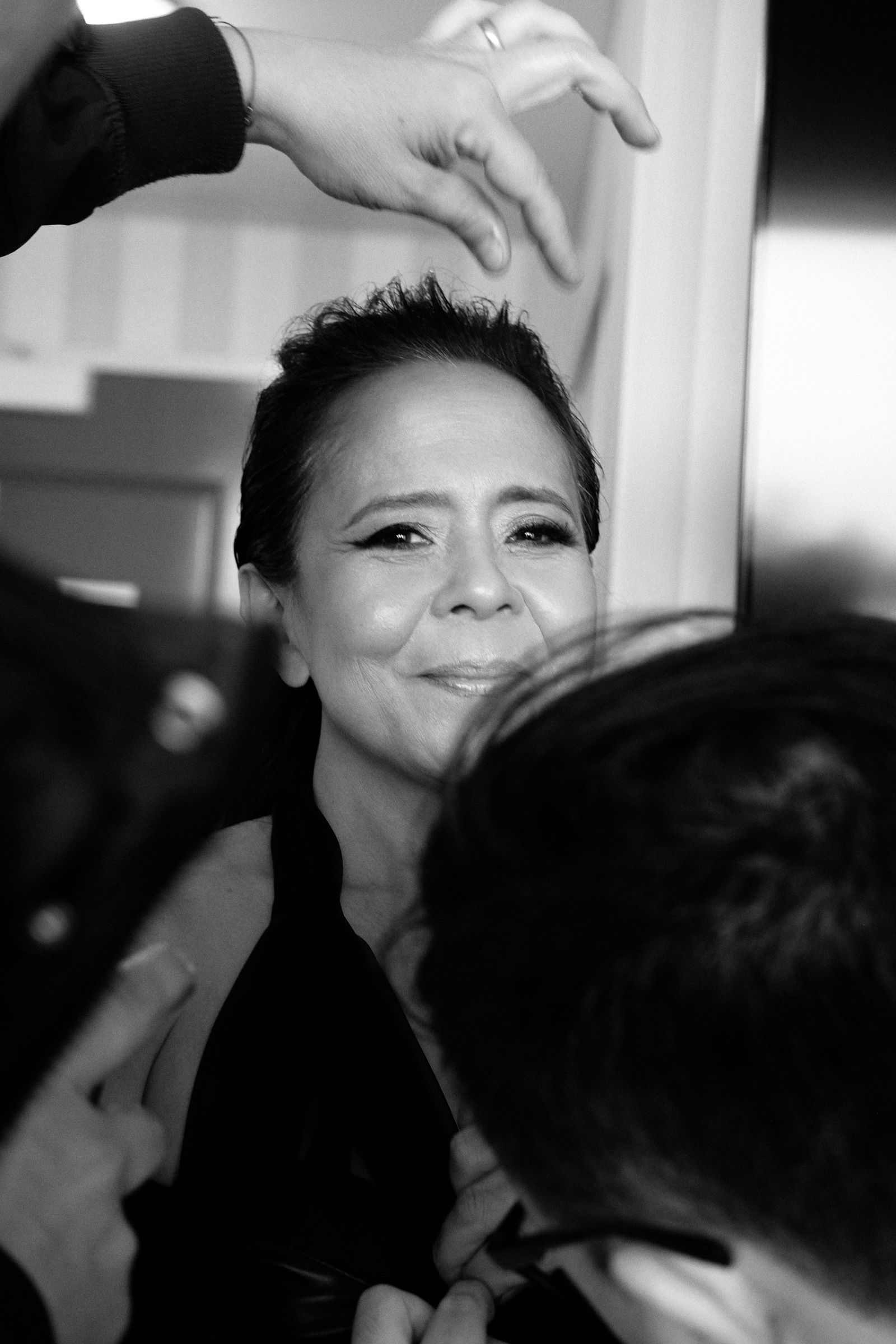 Clothing credits: dress by AZ Factory; bag by Judith Leiber; shoes by Steve Madden; earrings by Alessandra Camila Milano (Yaya Publicity) and Kat Kim (FSPR); rings by David Yurman and Edward Avedis (Yaya Publicity).