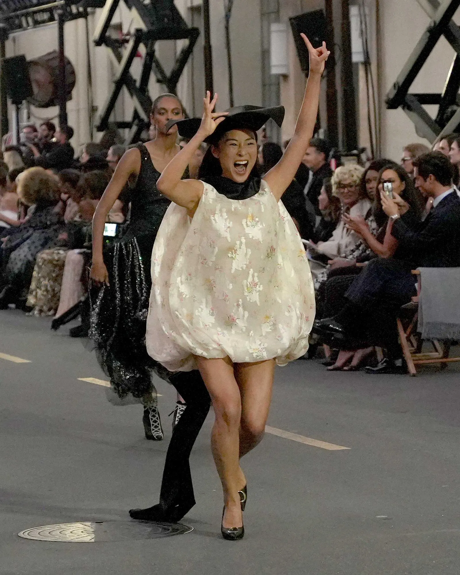 Among them? None other than the great Greta Lee, a red-carpet star of epic proportions, who strolled along the Parmount Studios-lot runway on Sunday night in look nine from Jonathan Anderson’s spring 2026 collection for Dior: an embroidered dress with a collar and bow at the back, topped with a “Stingray” hat.
