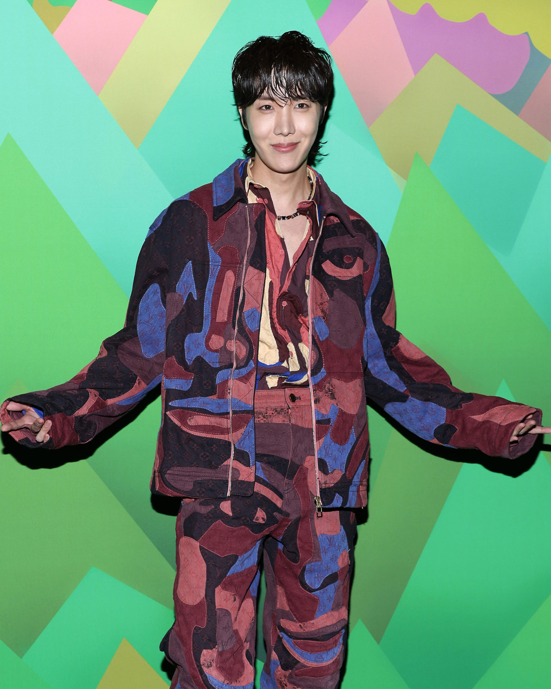 As one of the seven band members of BTS, J-Hope is no stranger to shining on the red carpet. Over the years, the South Korean rapper has slipped into everything from whimsical Gucci looks to sleek Celine suits. He’s clearly not afraid to experiment with fashion and to test out different aesthetics—and what better place to do this than at fashion week? This morning in Paris, the star attended Louis Vuitton’s fall 2023 menswear show dressed in a boldly colored camouflage look that was surprisingly dressy and front row-worthy.