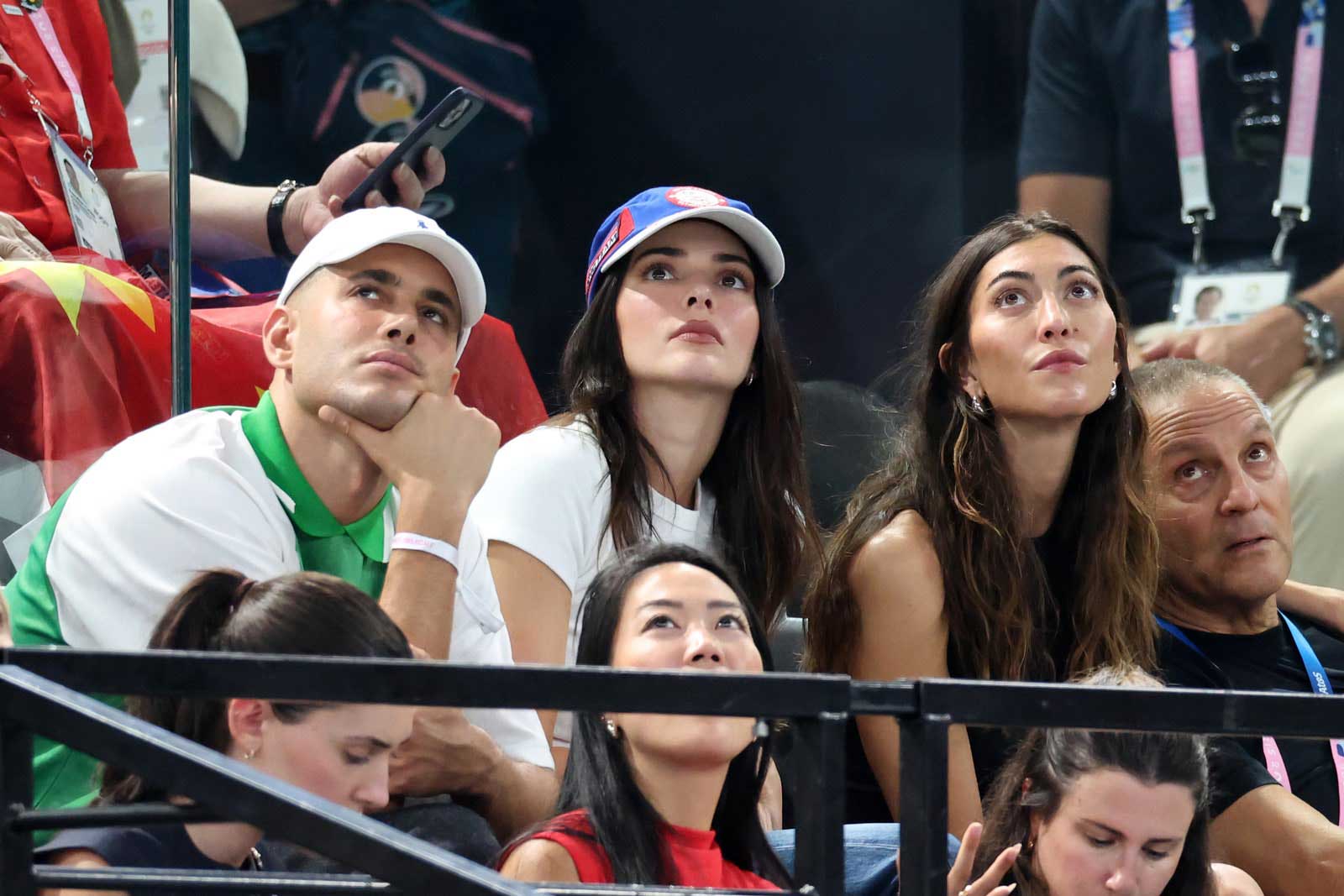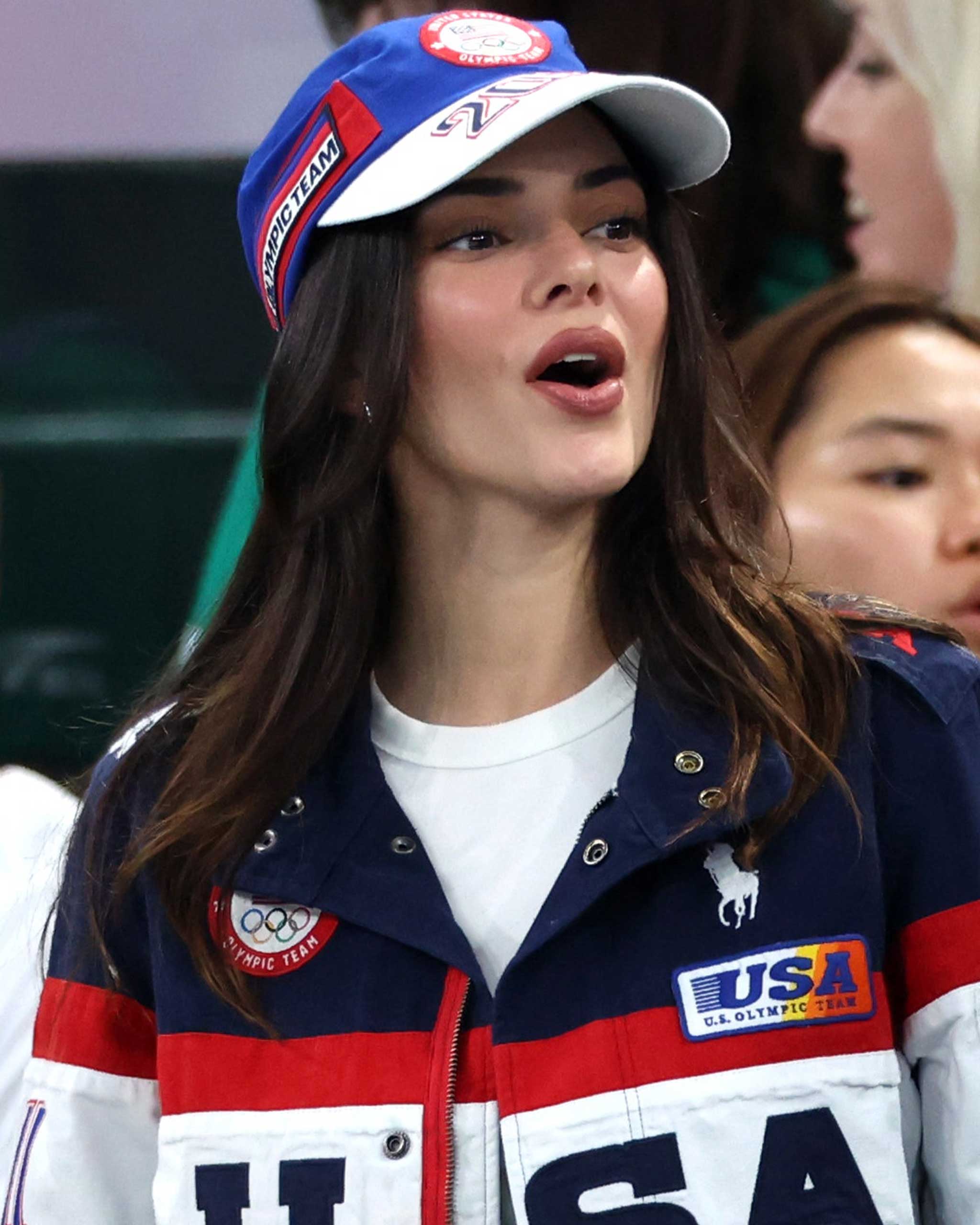 Alongside friends Fai Khadra and Sarah Staudinger at the women’s all-around gymnastics final on Thursday, Jenner cheered on Team USA decked out in appropriately patriotic gear, donning a patch-laden Ralph Lauren Polo zip-up—which will be worn by flag-bearers at the closing ceremony—over a cropped white tee, along with a matching baseball cap. The rest of the outfit, however, was quintessential Jenner: a pair of straight-legged blue jeans, a black leather shoulder bag, and black loafers from The Row. No matter what, Kendall Jenner will do the Olympics her way.