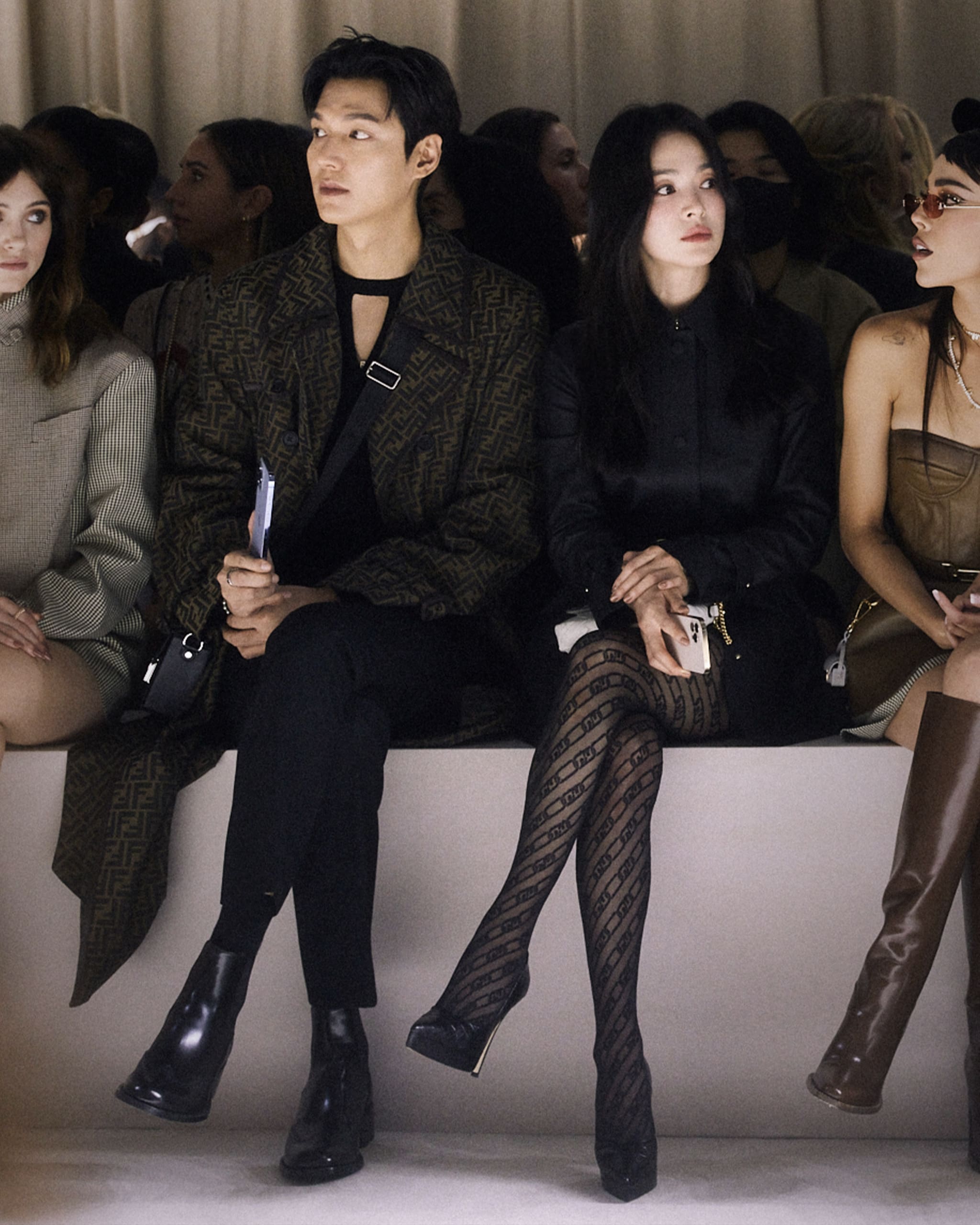 Seated front row beside Lee was Descendants of the Sun actor Song Hye-kyo, who became the brand’s first Korean global ambassador. Ahead of her comeback show, The Glory, Song turned heads in a black leather coat and Fendi stockings.