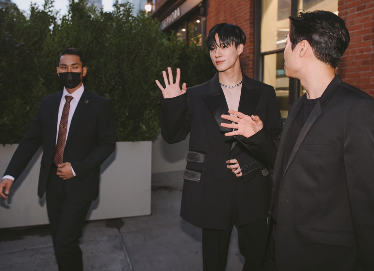 Meanwhile, Jeno’s fashion week experience also included an appearance at Vogue World, the magazine’s 130th-anniversary event. He proudly posed with celebrities on the occasion with designer Do, actor Sabrina Carpenter, and singer Ellie Goulding. The K-pop star wore his fringe down with a tailored tuxedo jacket and black trousers, opting to forgo the dress shirt. He wore a chain necklace to tie off the look.