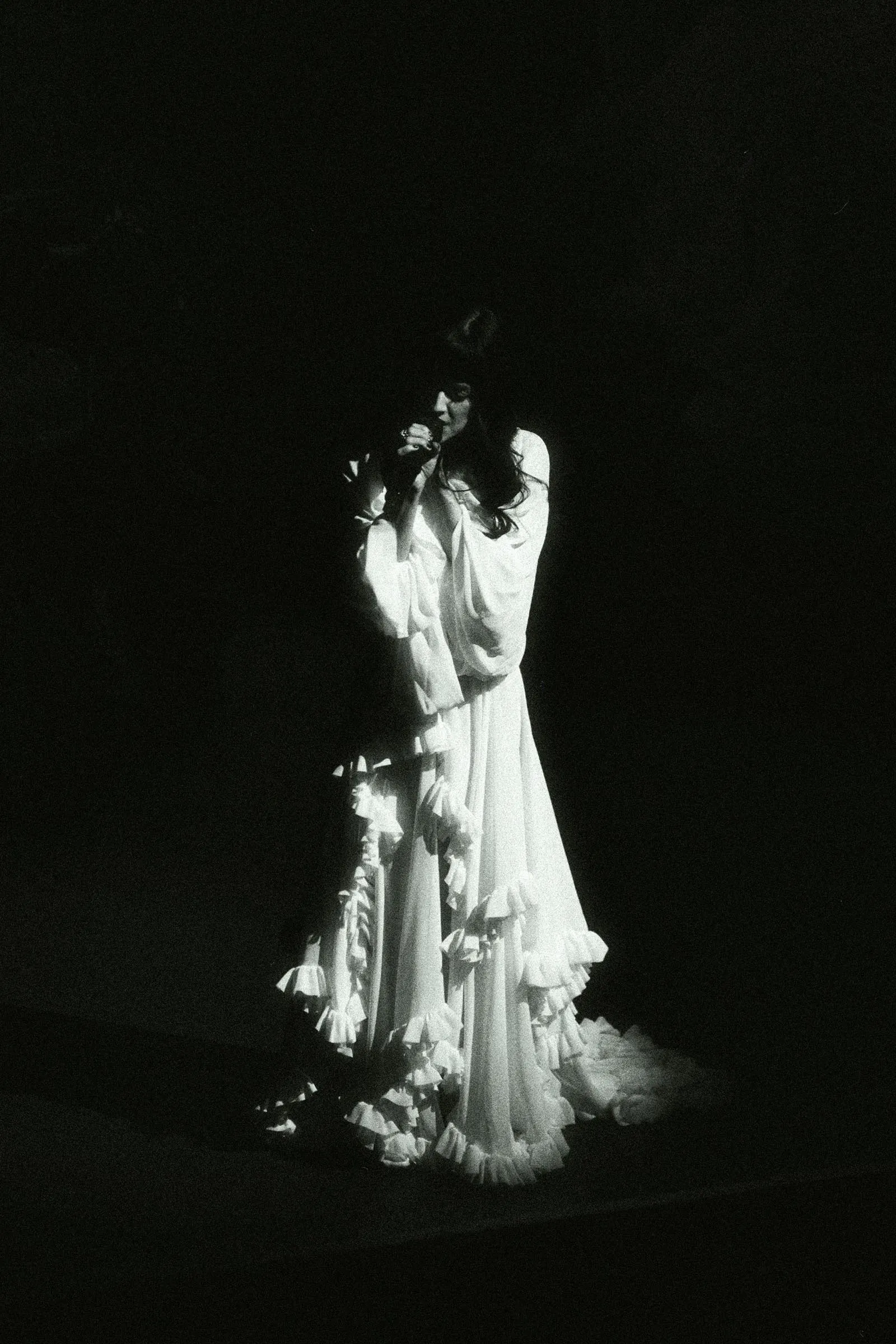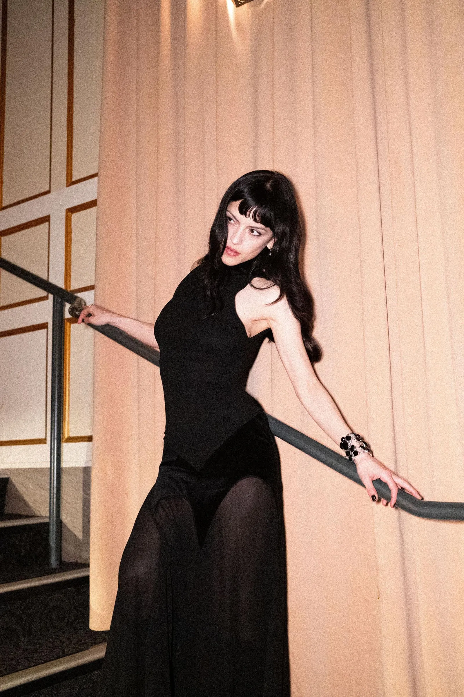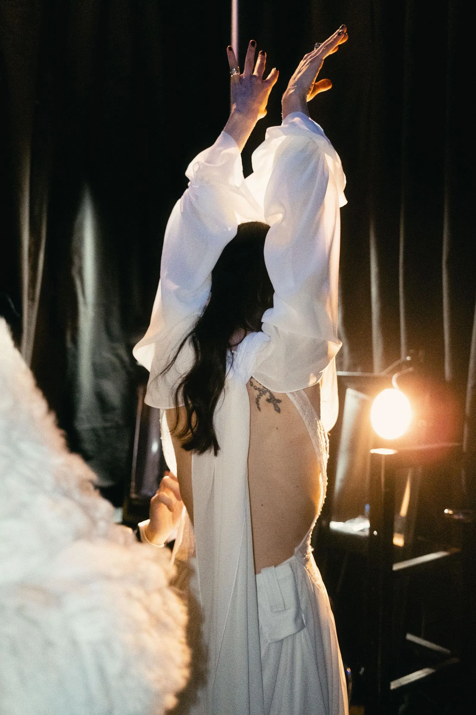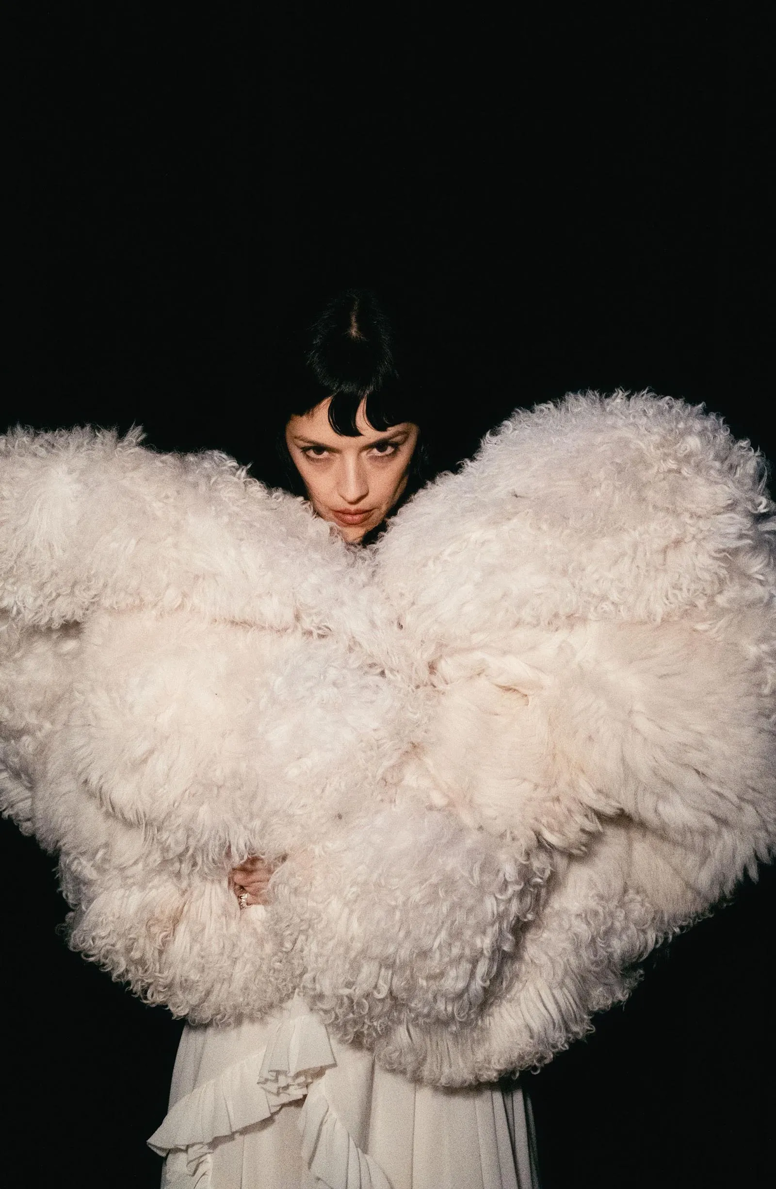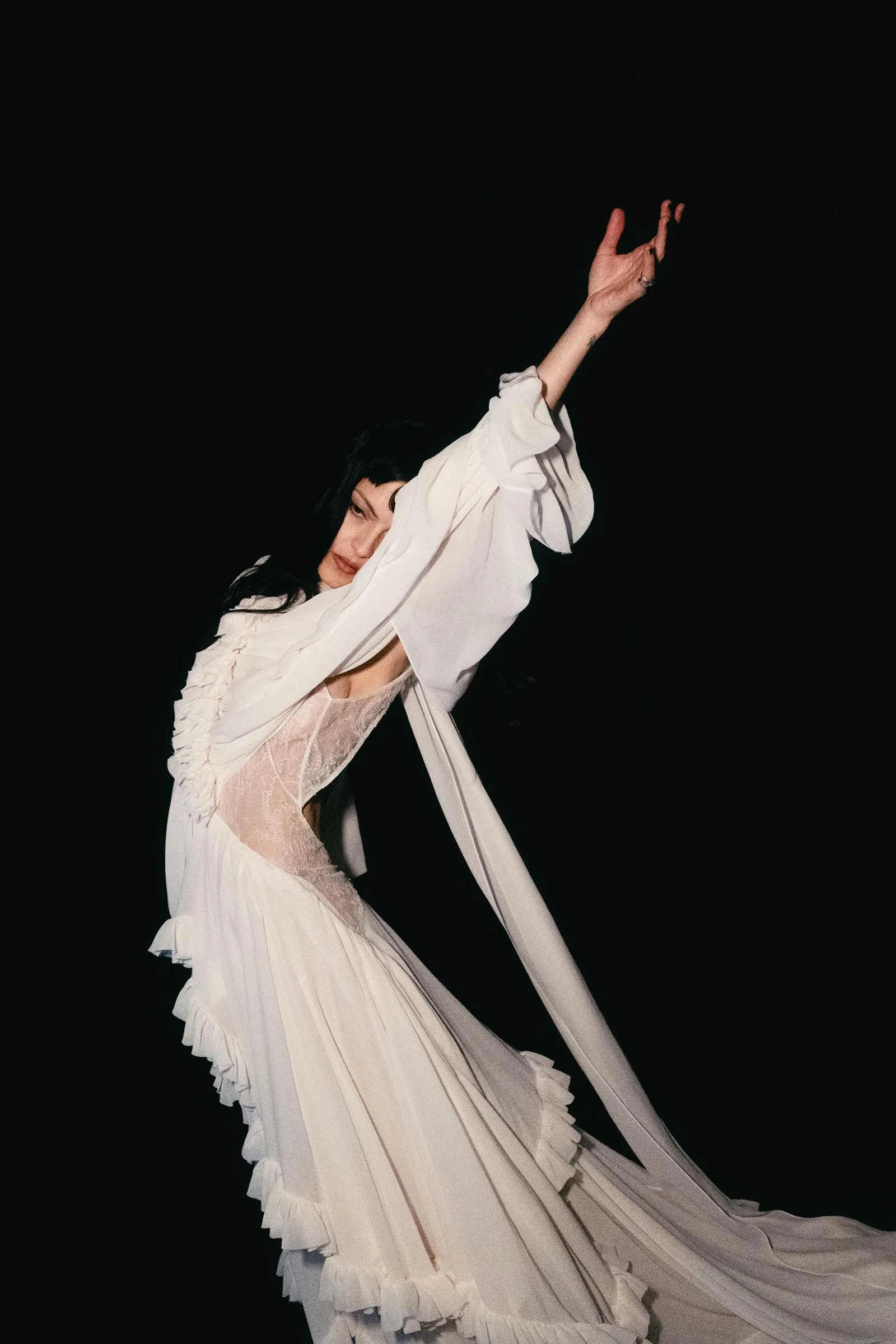Her onstage style fits the bill: Zardoya dreamt up a retelling of Swan Lake for her tour looks. “It traces the evolution of the white swan as she explores the natural world, moving through beds of moss, followed by her death and eventual resurrection as the black swan, descending into the underworld,” she explains. While Zardoya has always been drawn to the twisted tale, it felt especially prescient in this new chapter of her career. “All living things exist in a balance of light and dark and it felt like my transformation into Not for Radio,” she notes.