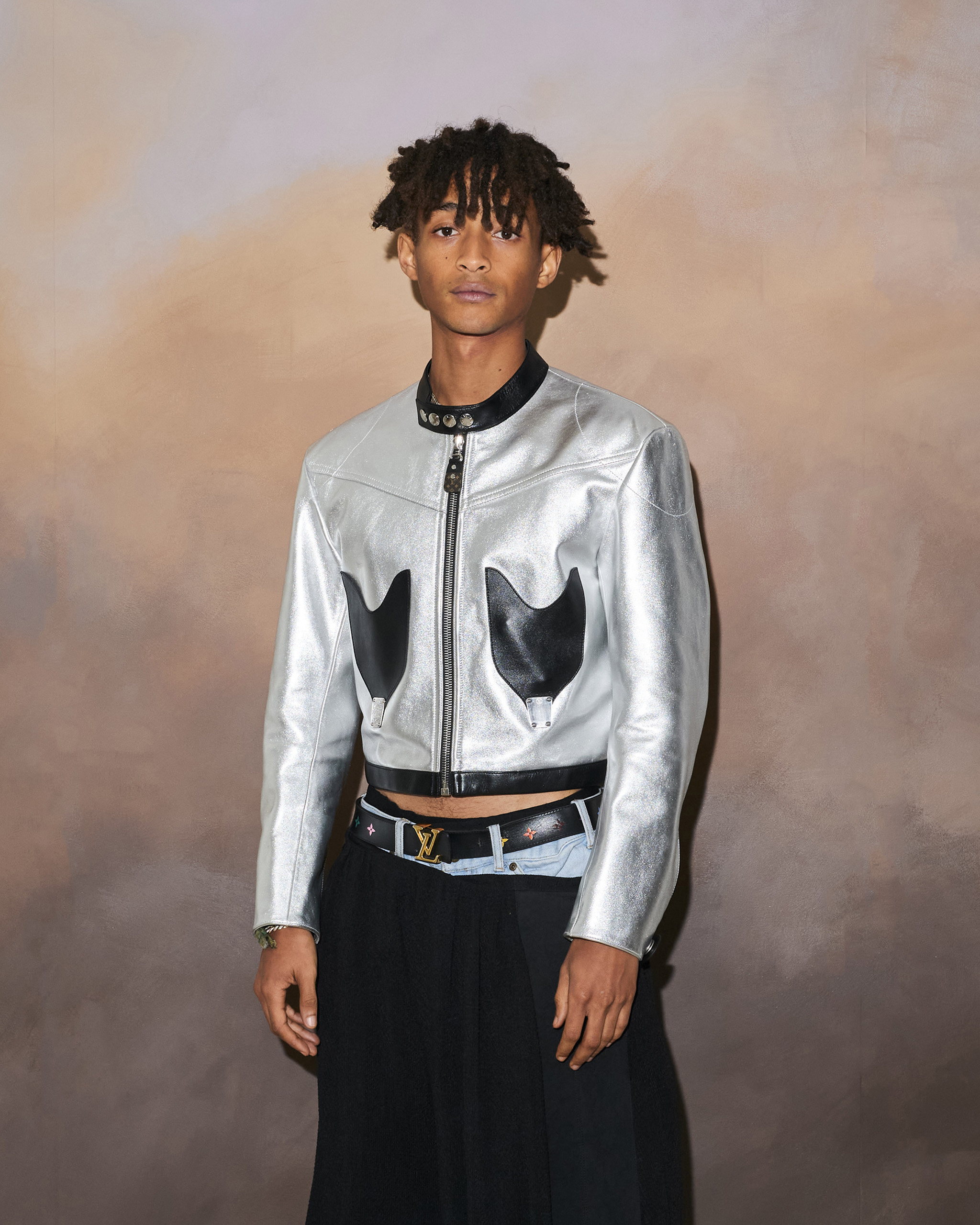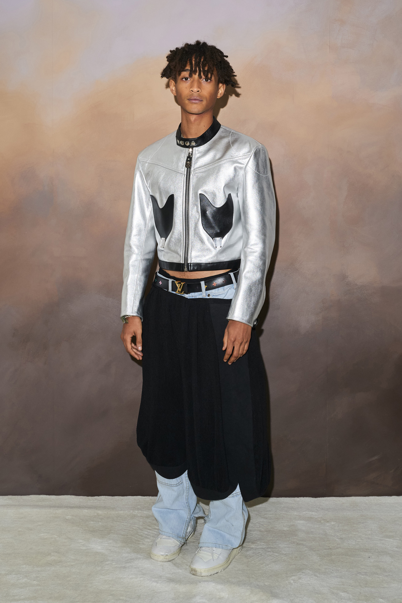 Jaden Smith proved that metallic glitz continues to take the fashion industry by storm (as seen in Vogue World‘s covetable roster of glossy pieces). With a silver jacket with black details paired with denim pants and a skirt layered on top, Smith takes on a genderless and fashion-forward approach to the occasion.