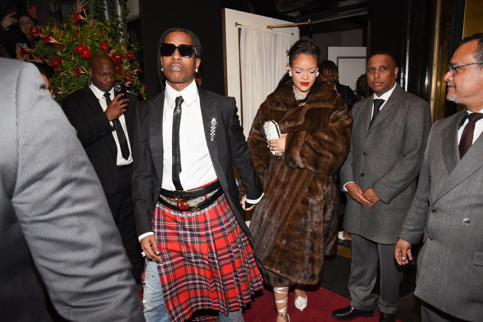 A$AP Rocky, meanwhile, took cues from an outfit worn by the maestro himself. The musician wore a black blazer and white button-down with a black leather tie, along with a kilt, all designed by Gucci for the event.