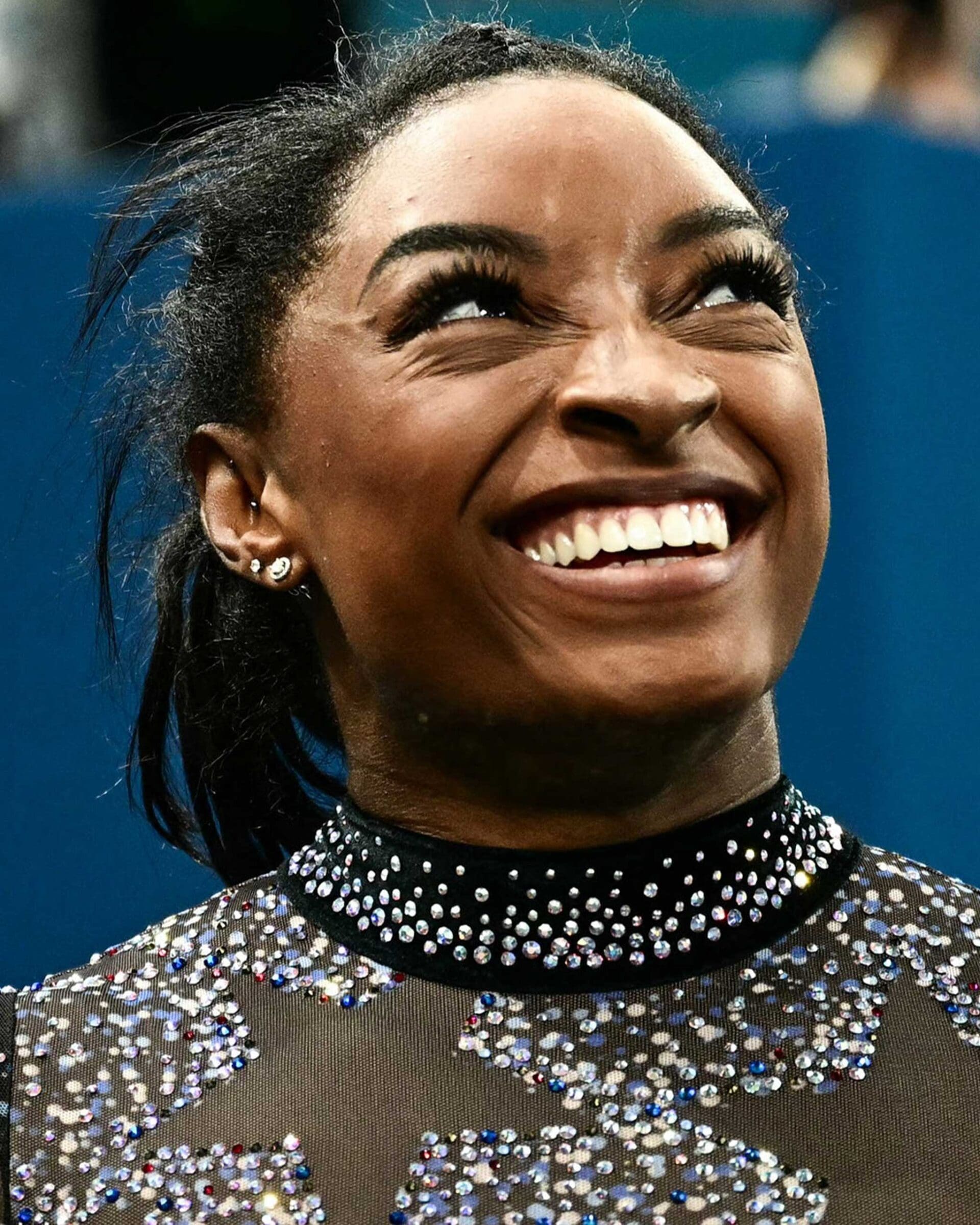 Stepping out in a dazzling gray, almost holographic leotard emblazoned with crystals, Biles’s resolve looked as steely as the hue of her ensemble. She performed, for example, her modified version of the extremely difficult “Yurchenko double pike” on the vault. At the end of the competition, Biles topped her group’s leaderboard with a score of 59.566–a number that would have won the last two world championships.