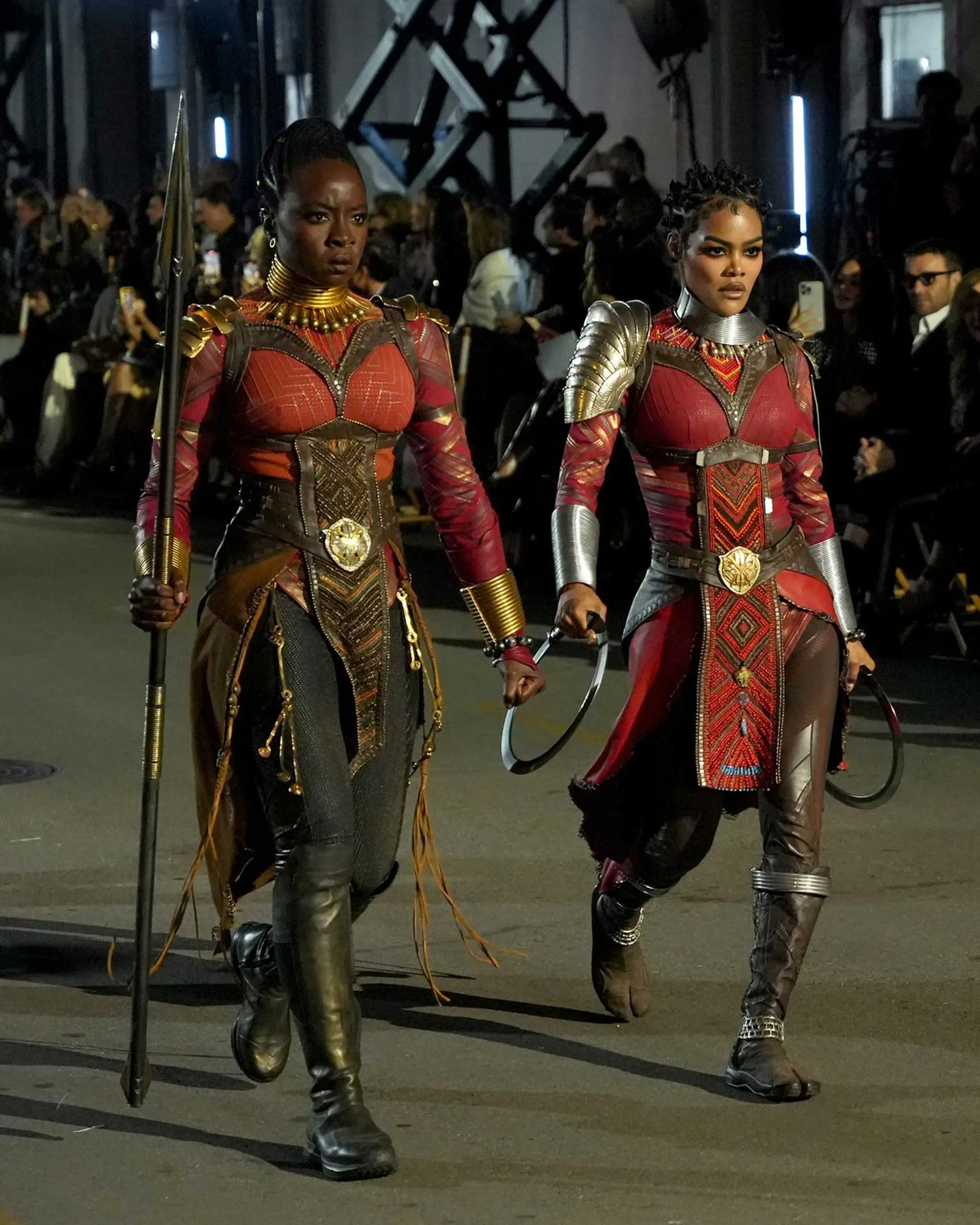 Gurira and Taylor appeared in the sixth act, which highlighted Afrofuturism and celebrated the work of Oscar-winning costume designer Ruth E. Carter, known for films including School Daze, Malcolm X, and Sinners. The duo walked the Paramount Pictures lot runway in costumes Carter designed for 2018’s Black Panther.