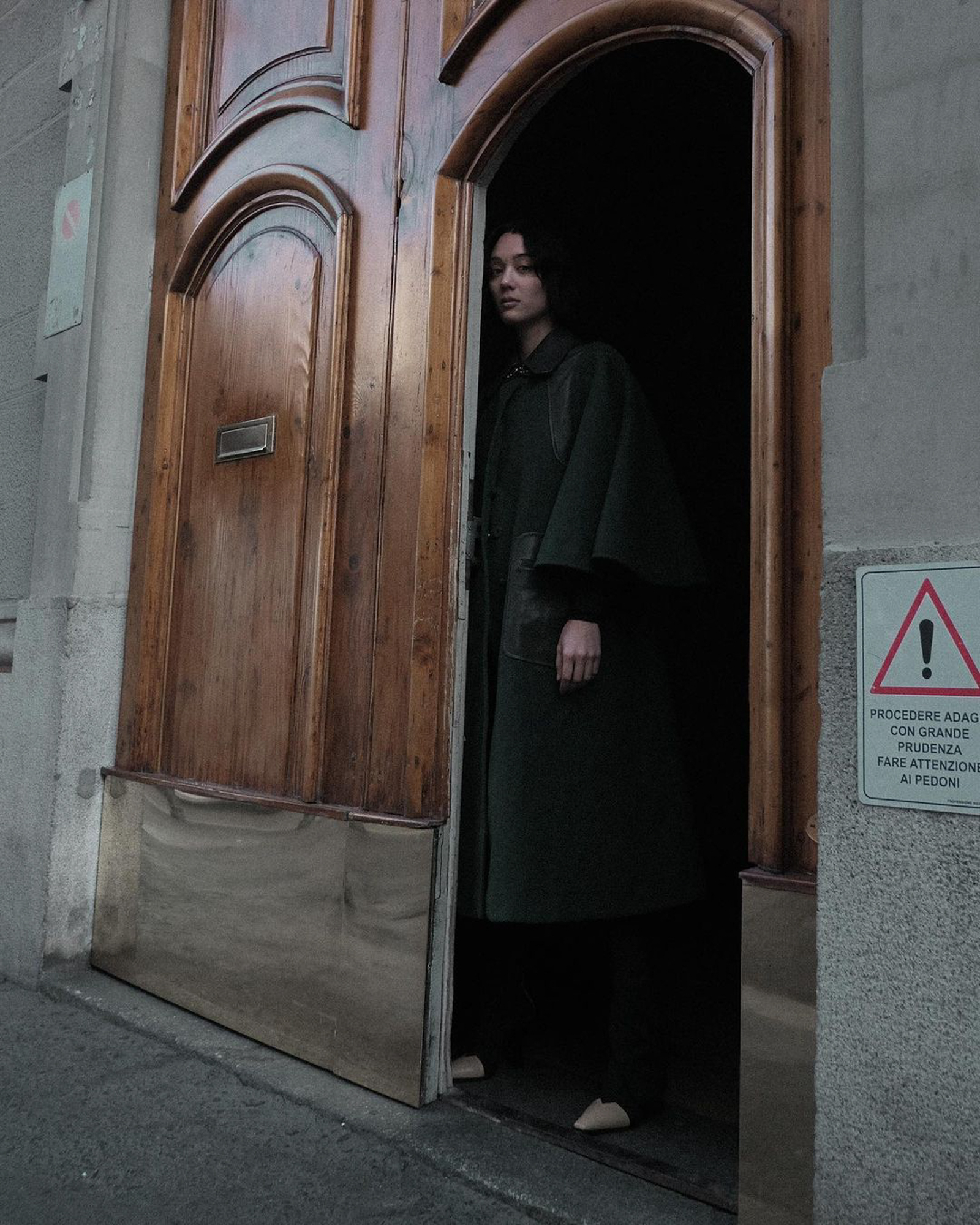 Content creator Kim Jones also takes to Gucci’s designs. Her slouchy black cape coat offers a fresh take on inky hues.
