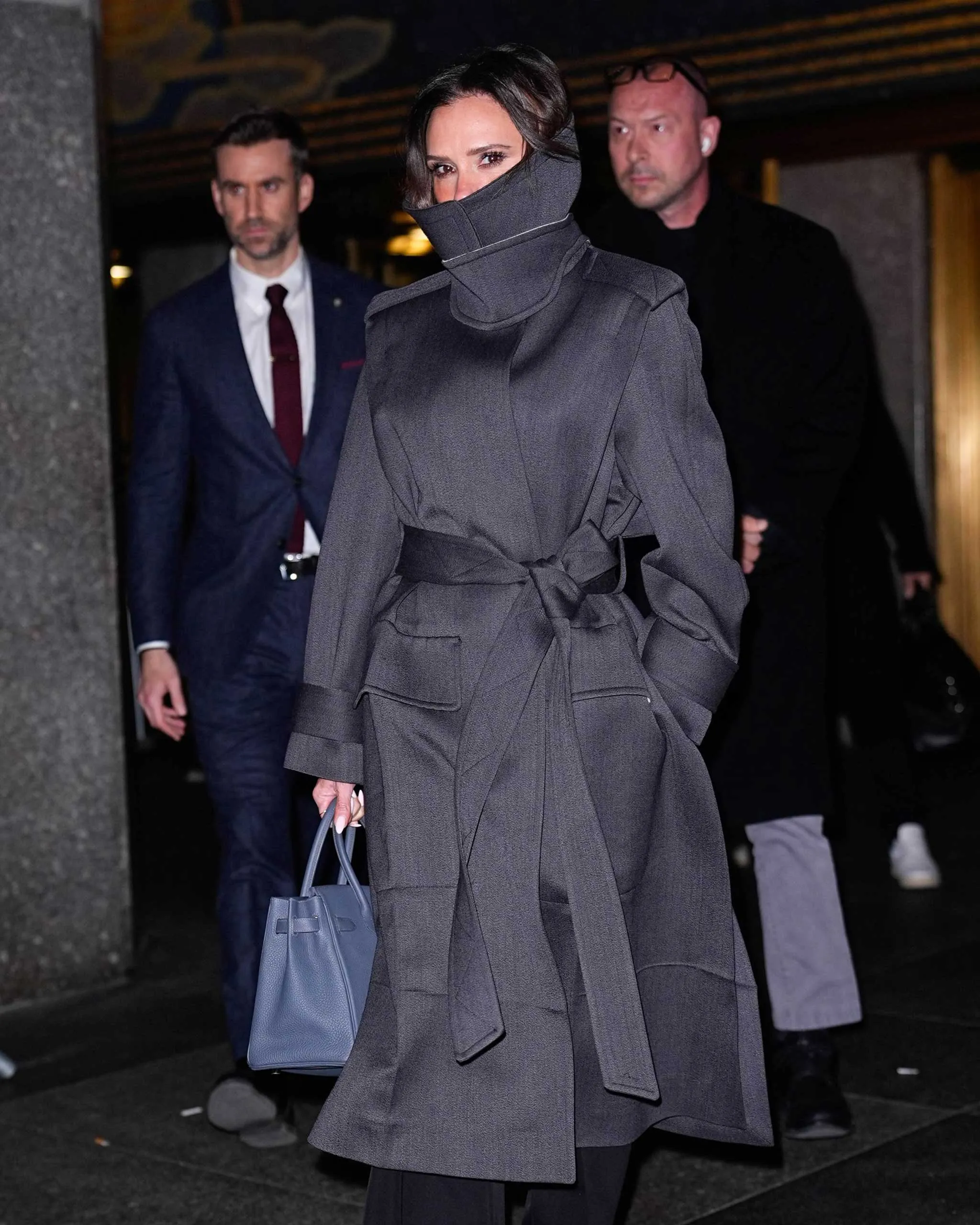 Still, the role of “miserable” fashionista is one Beckham has taken on with method-like gusto, once explaining to Vogue that she avoids smiling because she has “a responsibility to the fashion community.” And wasn’t it in 2017 that she arrived at LAX in a t-shirt reading “Fashion Stole My Smile?” Well, that slogan proved apt last night, when she was photographed in New York with the entire lower half of her face swallowed by a funnel-neck trench coat—talk about “the barrier [going] up”—styled with platform-skimming trousers, and an Hermès Birkin. It would hardly be surprising if fashion’s foremost comedian had, in fact, flashed her toothiest grin beneath that collar.