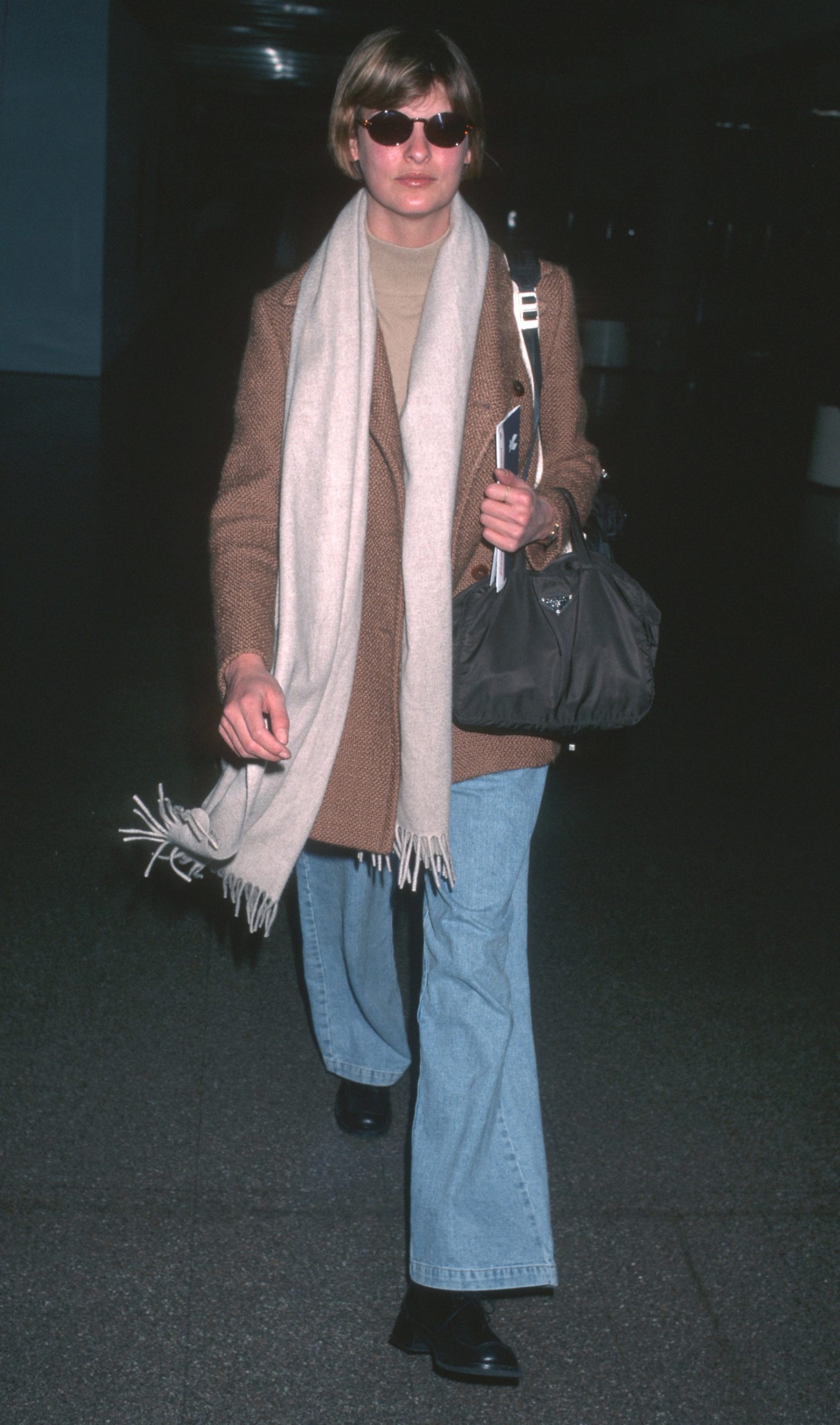 Linda Evangelista at Los Angeles International Airport in 1997. Getty Images
