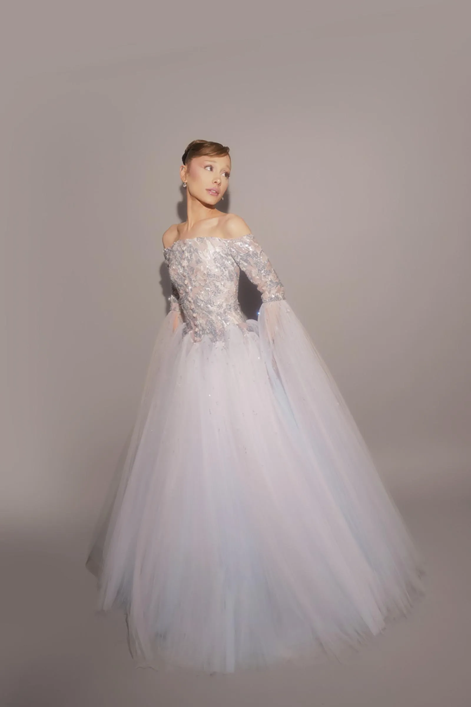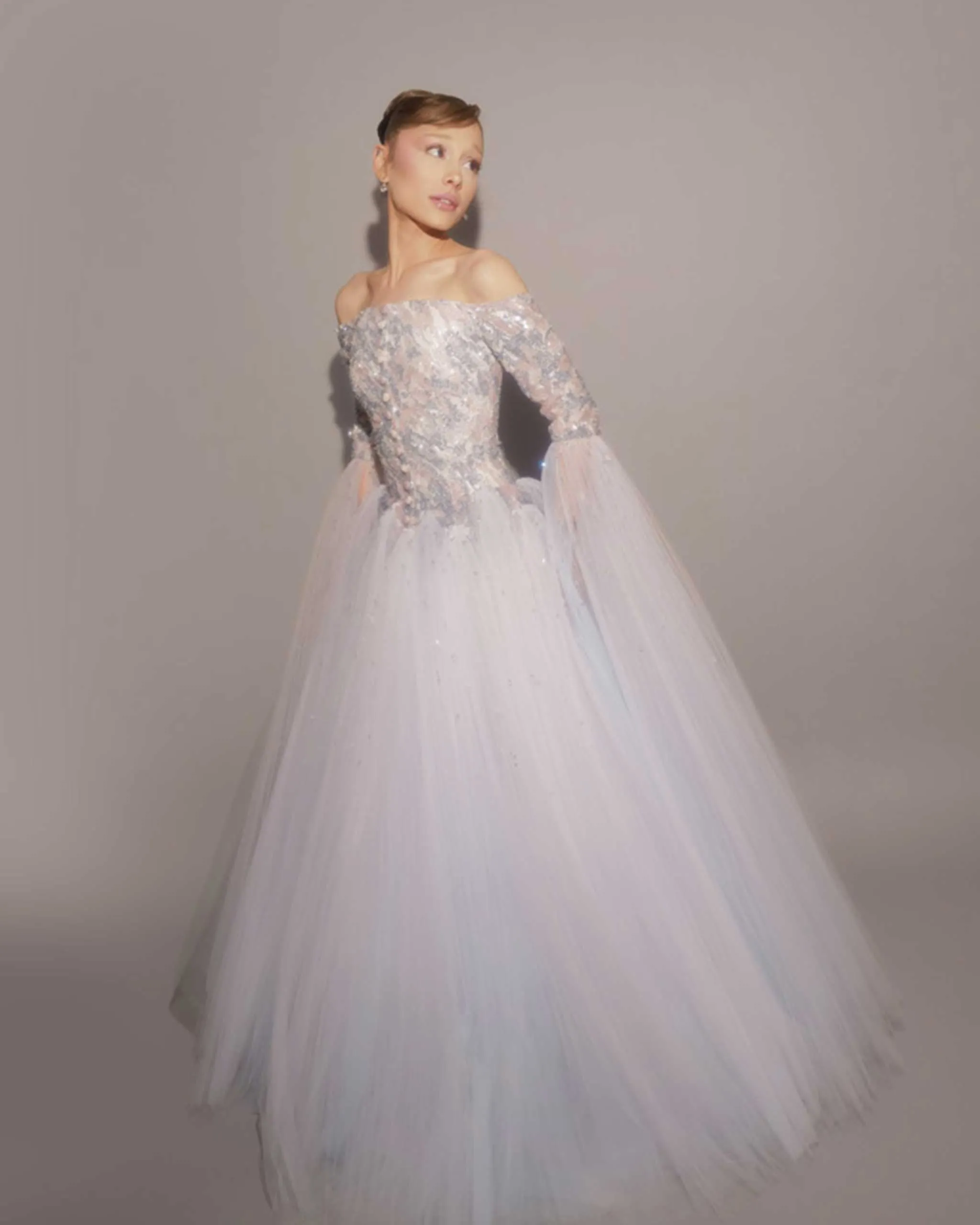 And just like magic, the star seamlessly slipped back into Glinda’s shoes for the film’s five-city global premiere tour, serving breathtaking, meaningful looks with the help of stylist Law Roach. A magenta pink archival couture dress from 1998. A vintage Gilbert Adrian dress to pay homage to the original Wizard of Oz costume designer. And for the final hurrah in Singapore? A custom gown that holds space for all of the Glindas. “Law and I decided to partner with this custom Thom Browne look, as a way of paying homage to all of the Glindas in one dress, incorporating blue and bursts of sparkles just like Lena Horne’s Glinda dress whilst still including a touch of pink in honour of Billie’s Glinda dress. All of which comes through in a slightly more extreme silhouette, honoring her look in this second film as whimsical tulle sleeves bring an extra touch of magic,” says Grande.