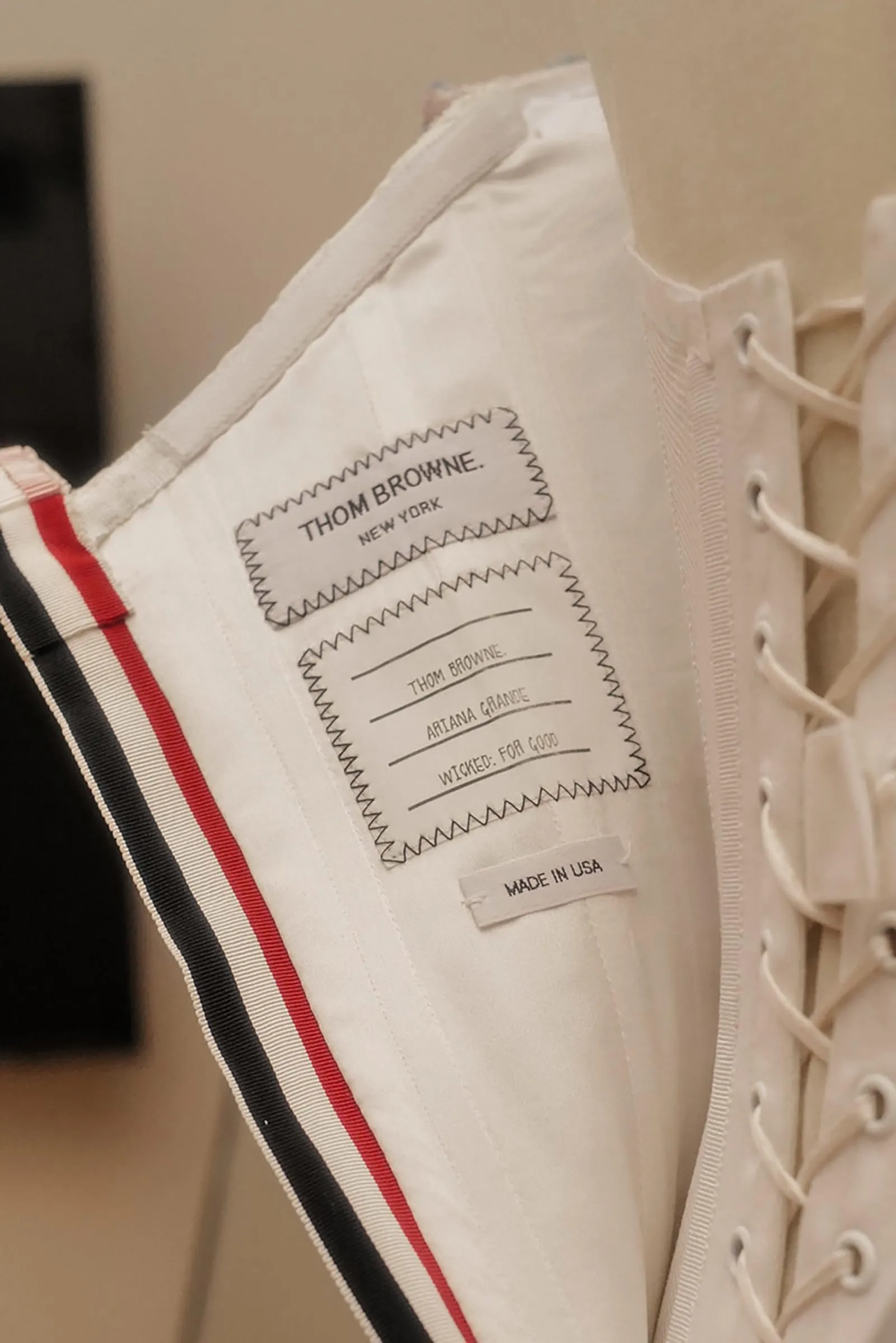 One custom Thom Browne look to honor the Glindas that have come before her. See how Ariana Grande got ready for the Wicked: For Good Singapore premiere.