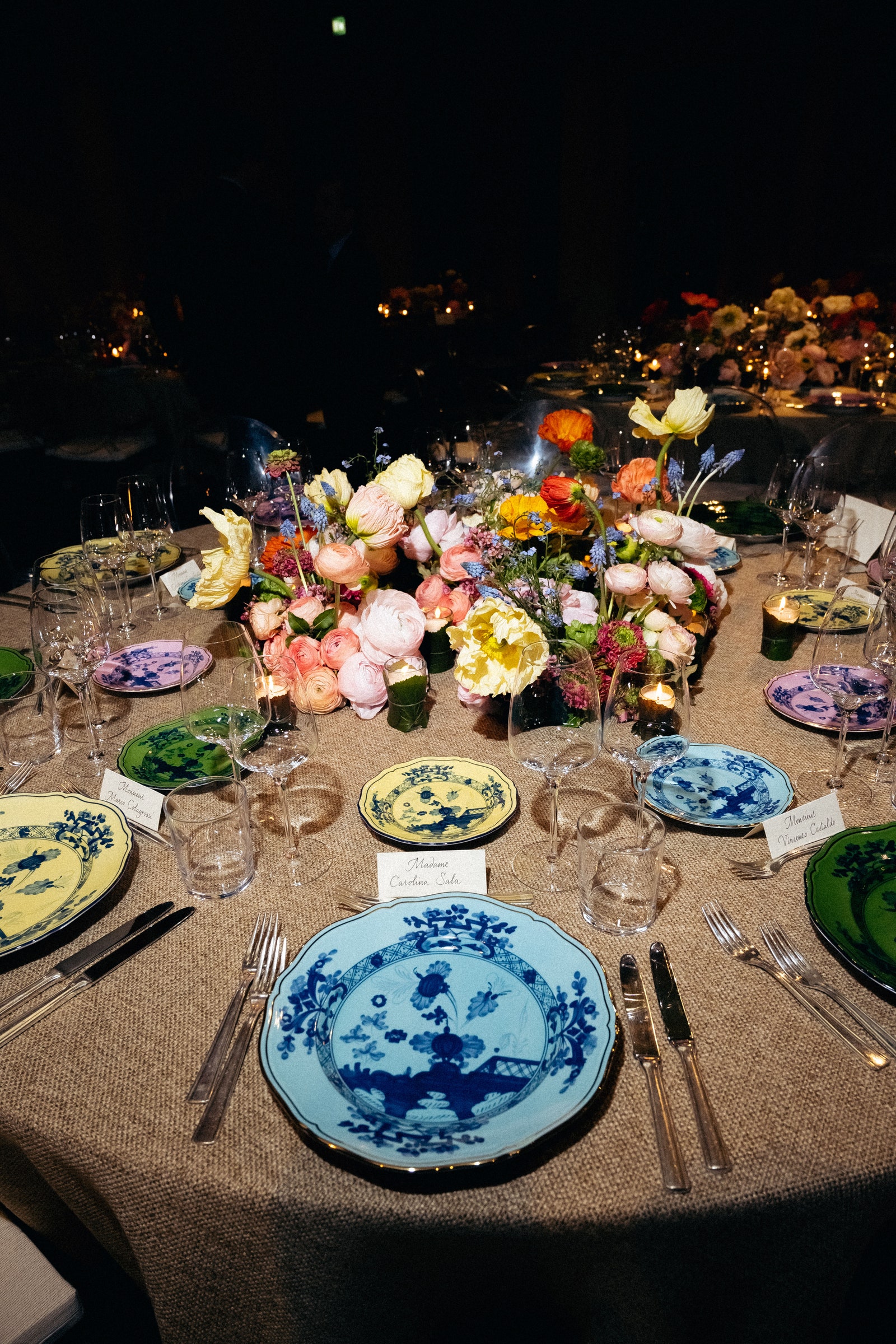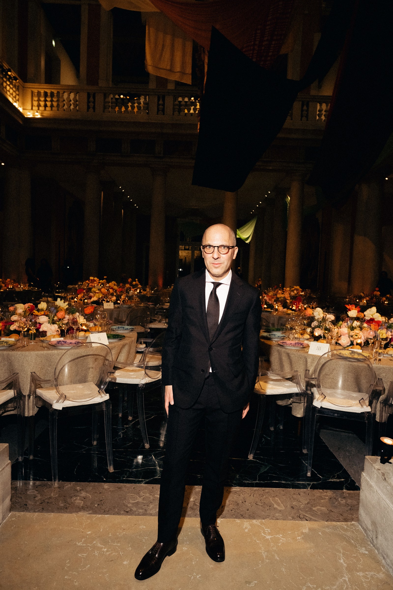 Once the tour was done—and we lingered to look for so long that organizers dimmed the lights to shoo us onwards—guests gathered downstairs. They included Matthieu Blazy, Daniel Delcore, Marco De Vincenzo, Sara Battaglia, Francesco Ragazzi, Giuliano Calza, Gilda Ambrosio, and Giorgia Tordini.