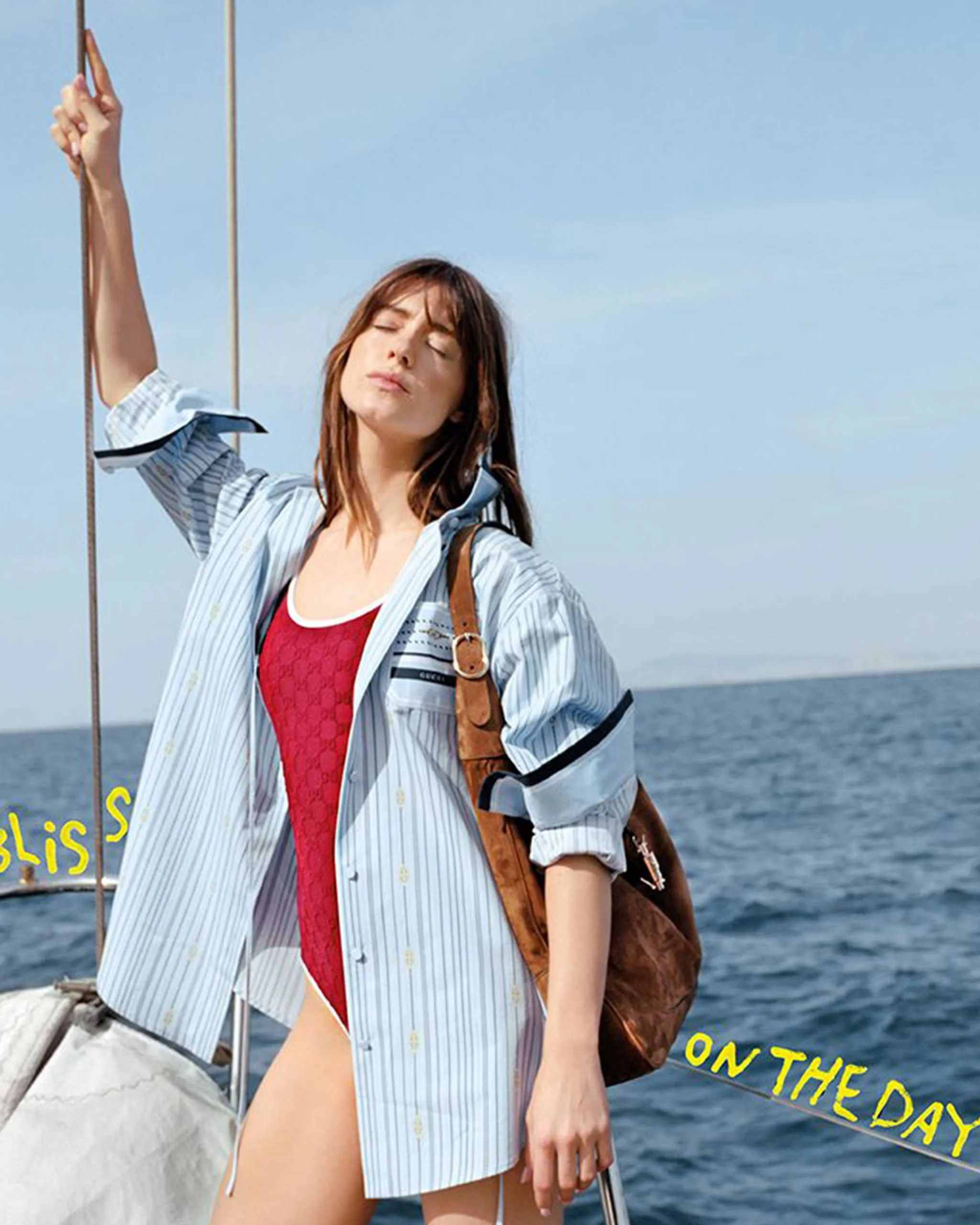 If anything is going to tempt Daisy out of her Arizonas this summer, it will likely be the chic loafers she discovered as part of the Gucci Lido collection, which she is fronting alongside David Jonsson and Aliocha Schneider. “I loved the soft loafers in green—so great with jeans and a white tee,” she says. “I actually felt quite Jane Birkin-y in a lot of the looks, like a really beautiful matching white top and shorts set, which was quite ’70s. Loved!”