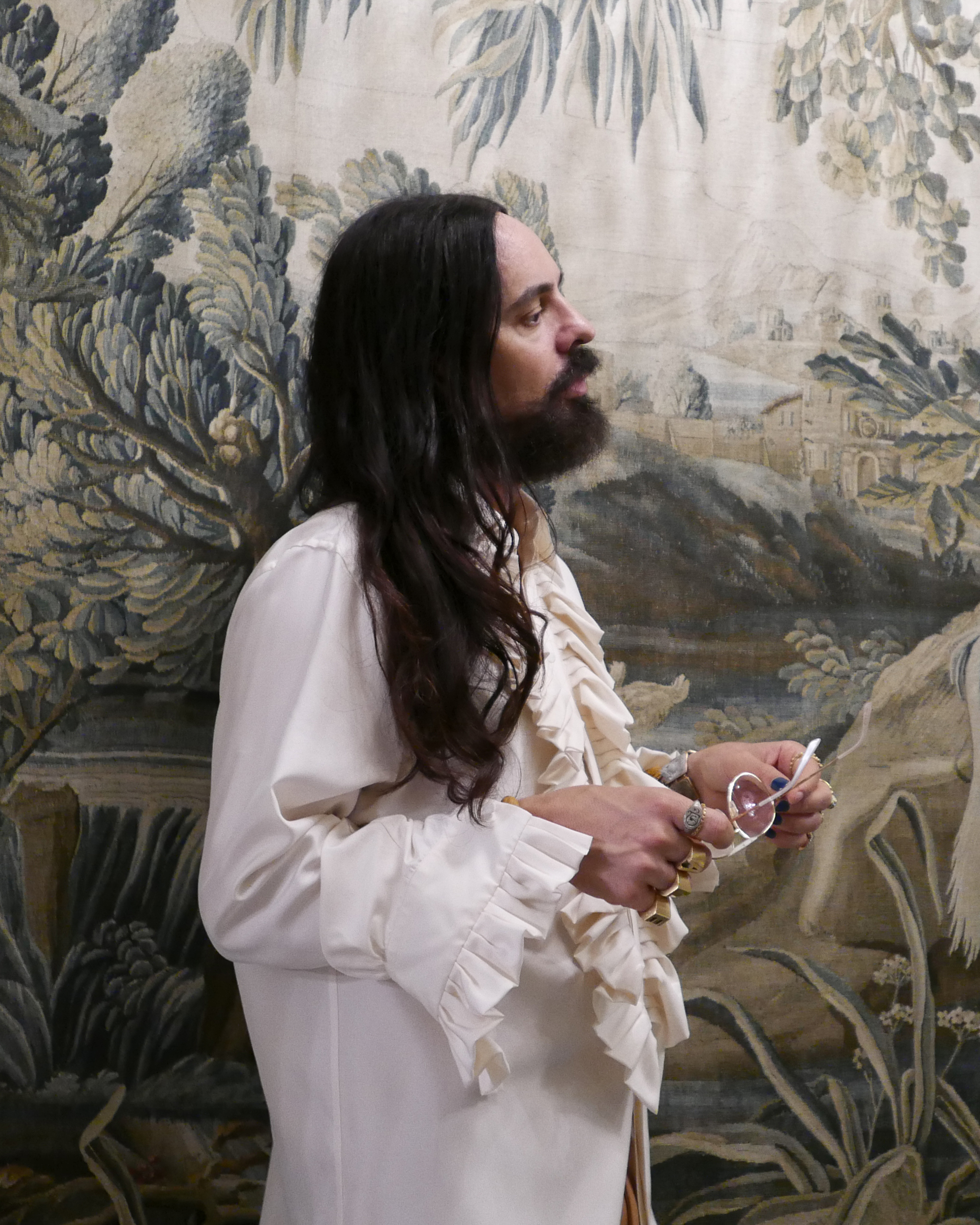 After his term as Gucci creative director, many asked if his flamboyance is timeless or if it’s for the moment. Examining if he sees his vision lasting, he initially found it hard to define, “because I do what I am. I [do] what I’m living and I narrate what I see. So it’s very difficult for me to define what I’m doing. I don’t think that fashion can always remain the same. Sometimes when you work on something or when you experience something, things change without you realizing it. And the past creative directors have created a language that always changes. Fashion is unpredictable. I do try and manage it sometimes. But I can’t say much more about this.”
