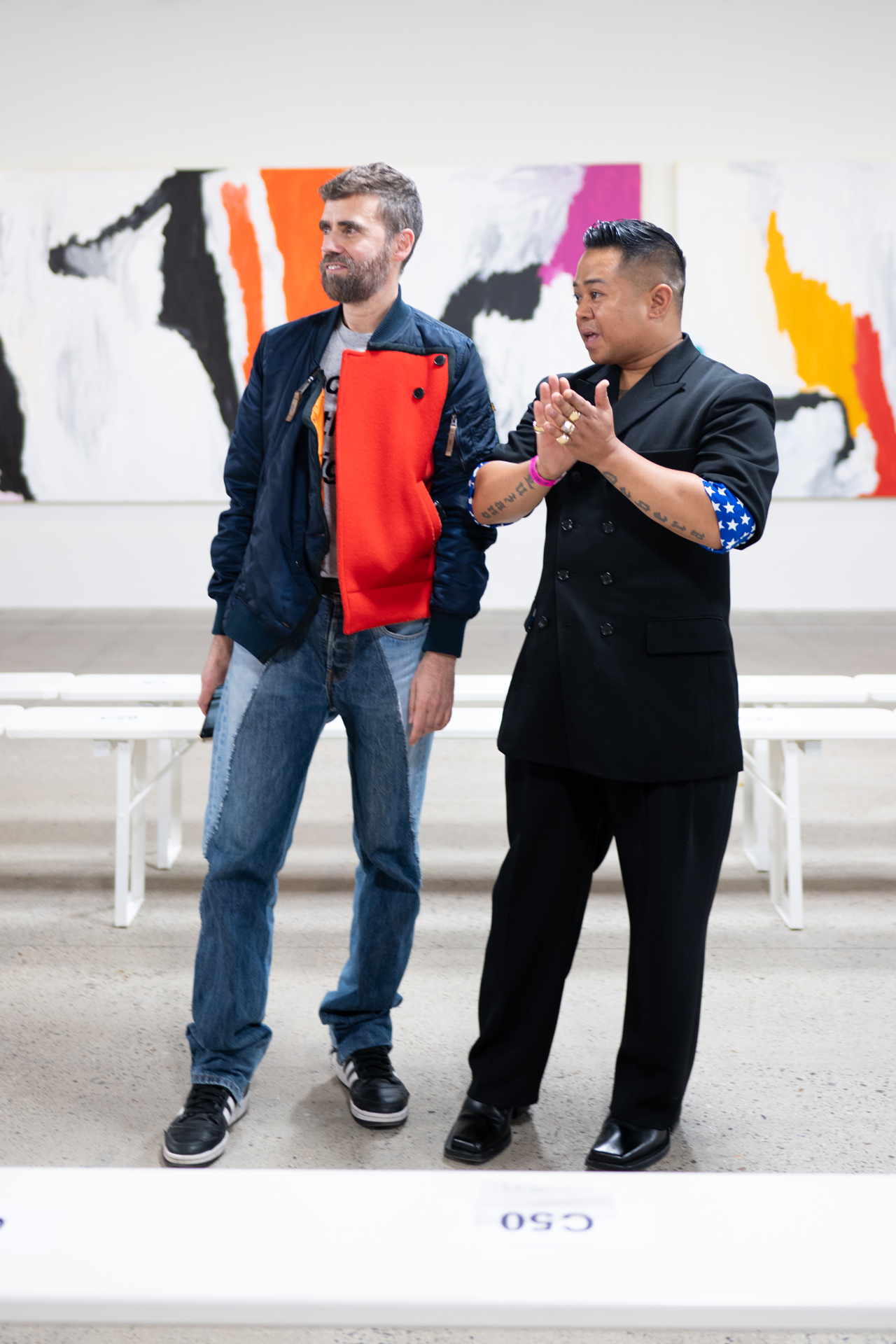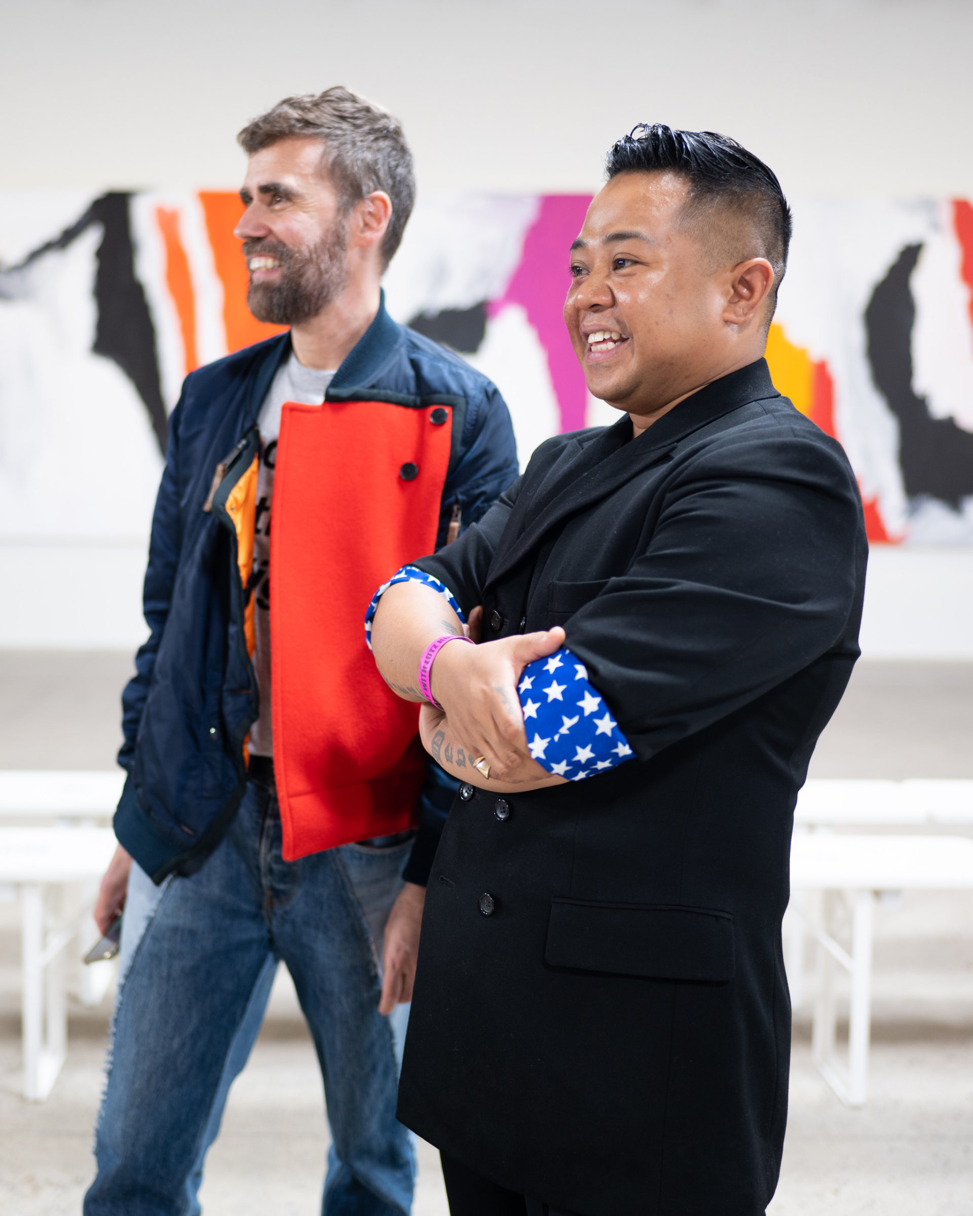 Photographer Martin Romero, also Filipino, takes us backstage at the AZ Factory show where Vogue Philippines correspondents Anna Vitiello and Kim Jones, designers Norman René De Vera and Lutz Huelle, along with other fashionphiles gathered after the mahic ensued. Get an insider’s look at the exciting show below.