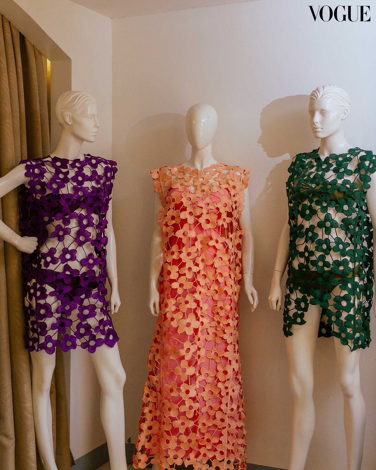 His collections often feature bright, bold colors reminiscent of the island’s sunsets and underwater coral gardens. The use of high-end chiffon and gaze faconne materials allows his garments to flow gracefully, mimicking the gentle movement of the sea breeze. Rosos says the focus on movement in his shows is intentional. “Backstage, I direct the models,” he explains. “Whenever we have fittings, I often have last-minute instructions for them. I focus on wearability and comfortability [which is why I direct their movements.”]