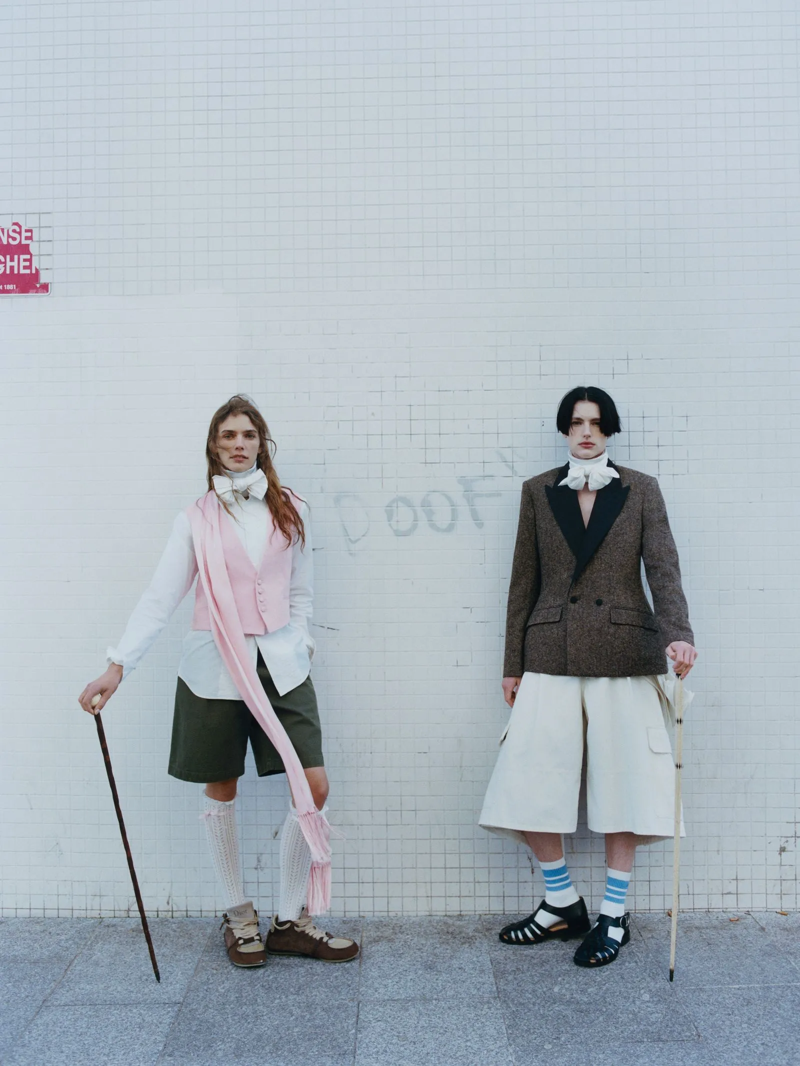 “We’ve broken it into different kinds of characters—for me, the biggest thing is that Dior can be different men, different women, different people: The brand is big enough to not just have one monotype,” Anderson says. He never thinks about the campaign while designing, but it’s an essential part of his understanding of the work and how it might live in the world. In planning his first campaign, shot by David Sims, he considered what an “aristocrat”—the original audience for high fashion—might be in a post-aristocratic age.