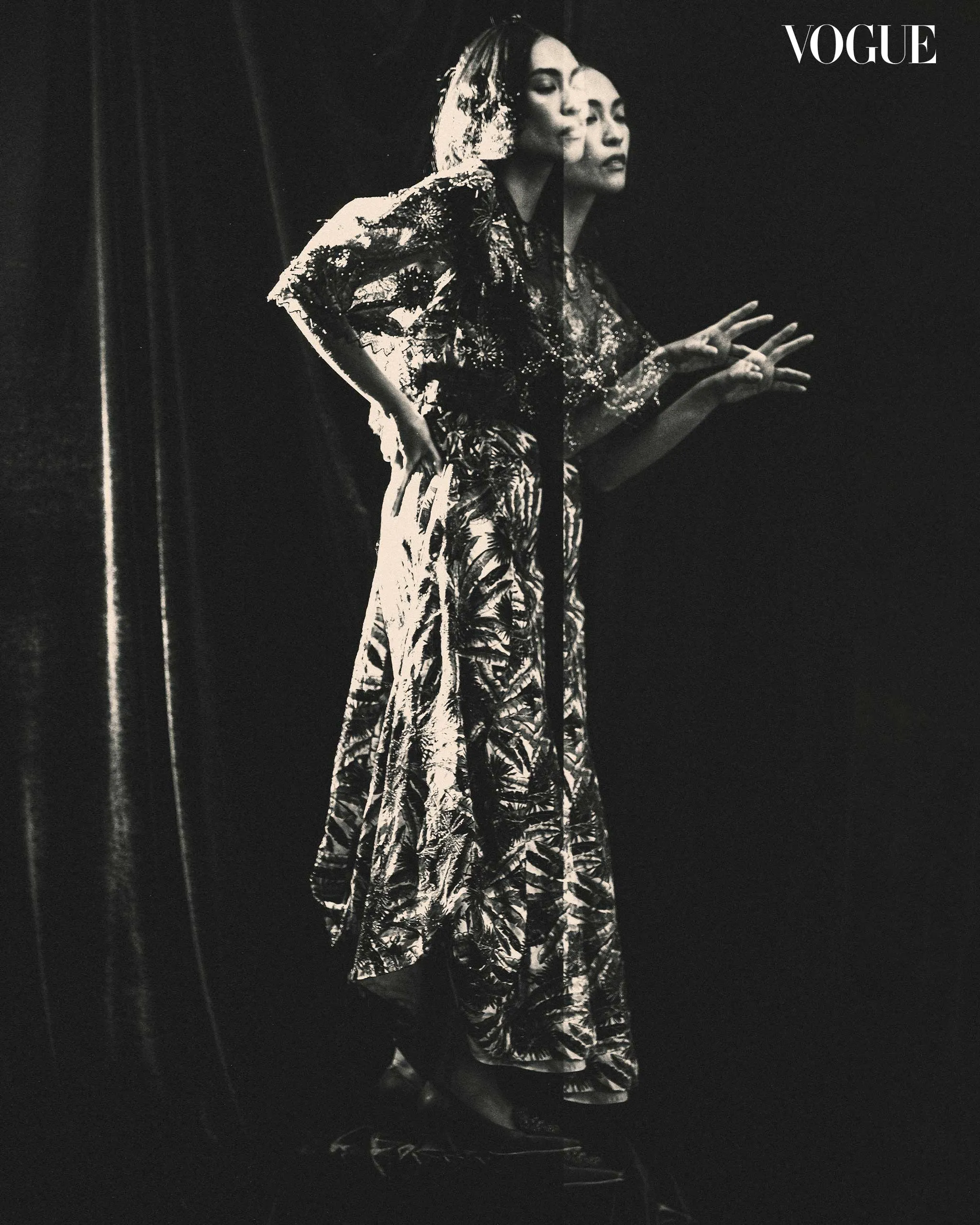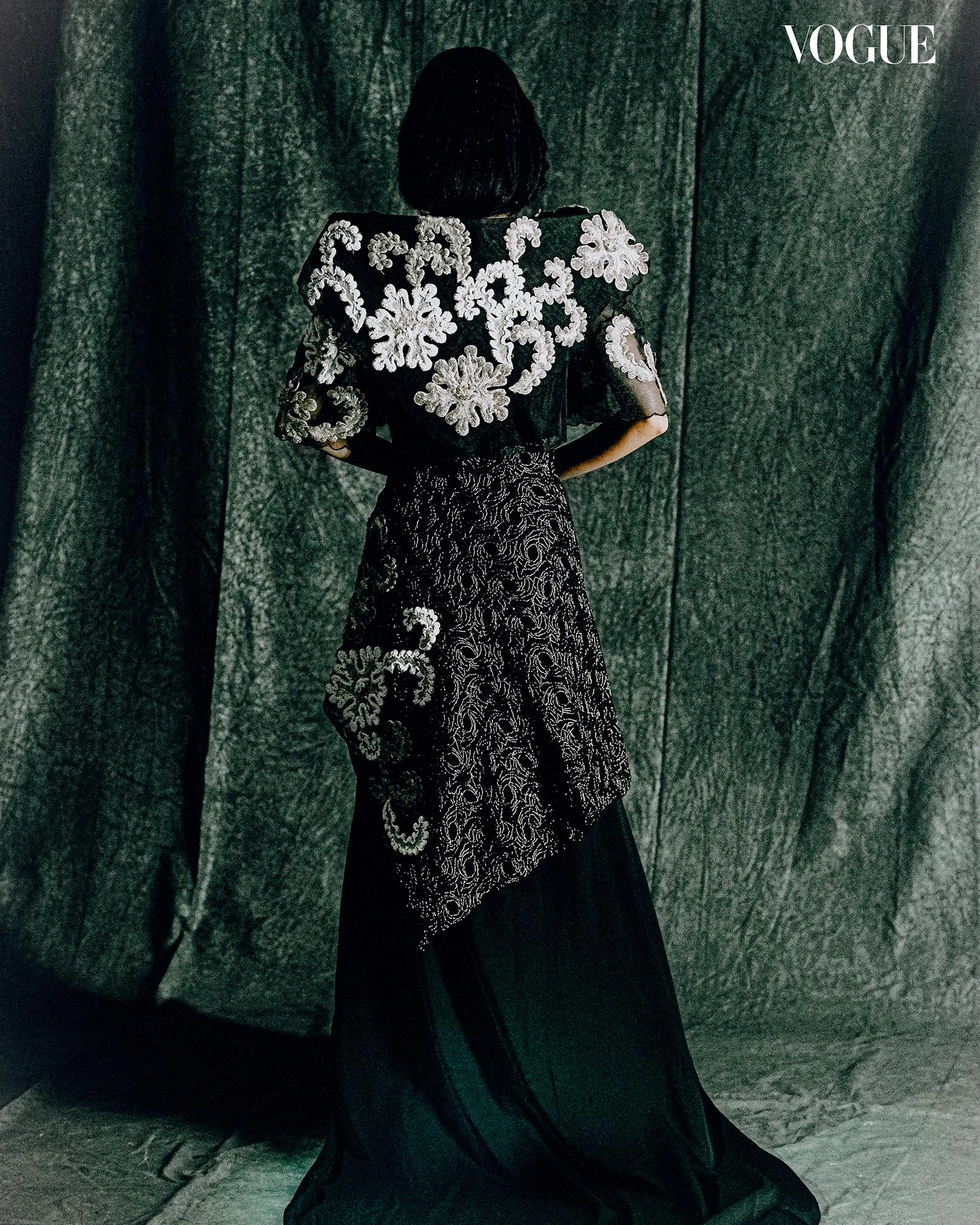 In 1989, Evelyn Lim-Forbes commissioned Tesoro for a look that could be worn for different occasions. The designer decided on a “tropical, lightweight design that would not age,” Lim-Forbes recalls. “I have worn this outfit many times and have always felt like an Amorsolo figure when donning it; not bad for a 35-year-old dress.” It is worn here with UNANG PANAHON jewelry. Photographed by BIMPOMAN for the June 2025 Issue of Vogue Philippines