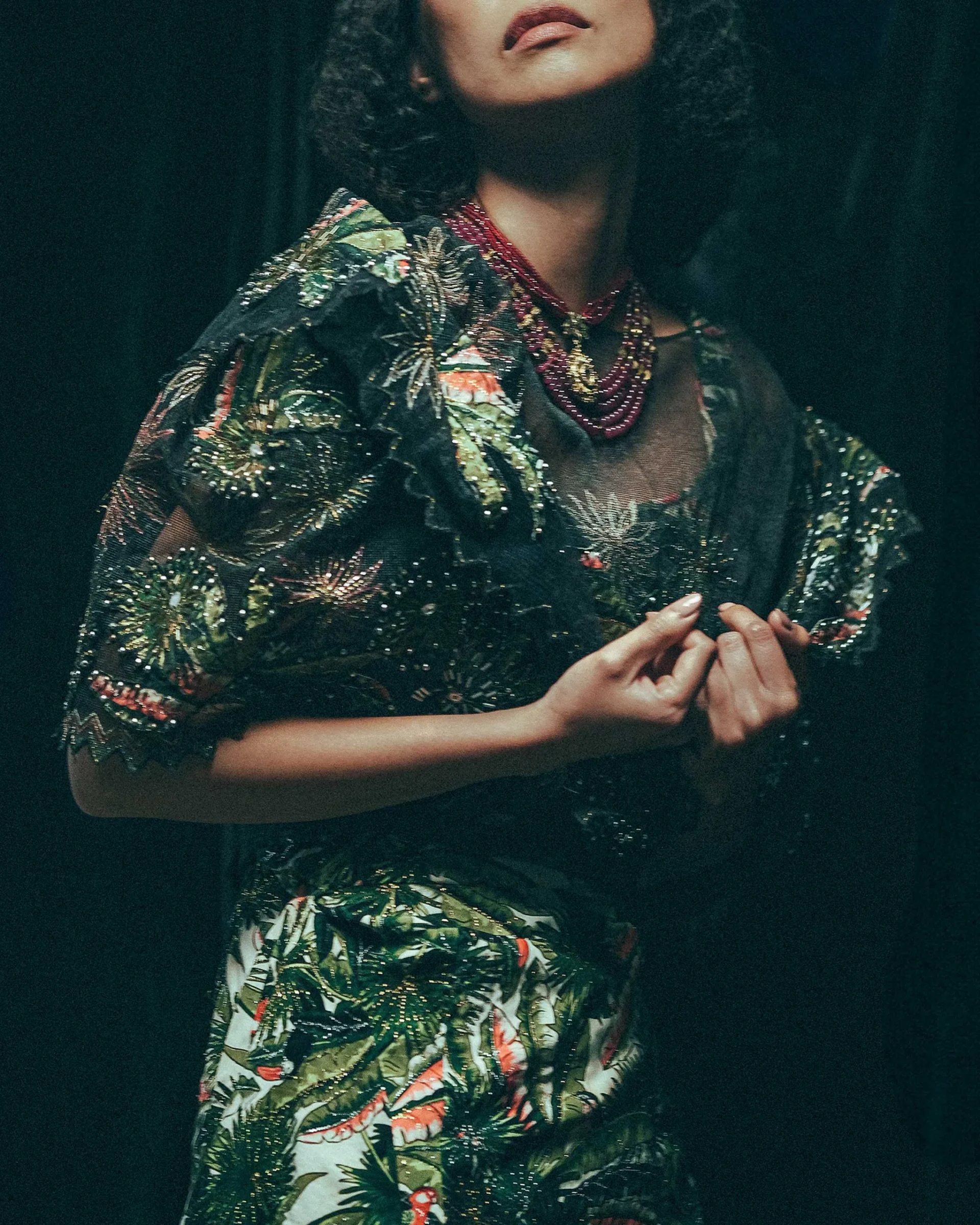 In practice, her pieces always tread the line between too much and not enough, pushing to extremes then paring back in quiet gestures. She would ground frenetic floral appliqué with thick lace trims, or she would veil full-saturation prints beneath sheer half-slips (or anaguas, traditionally worn as inner garments) to act as a kind of soft filter.