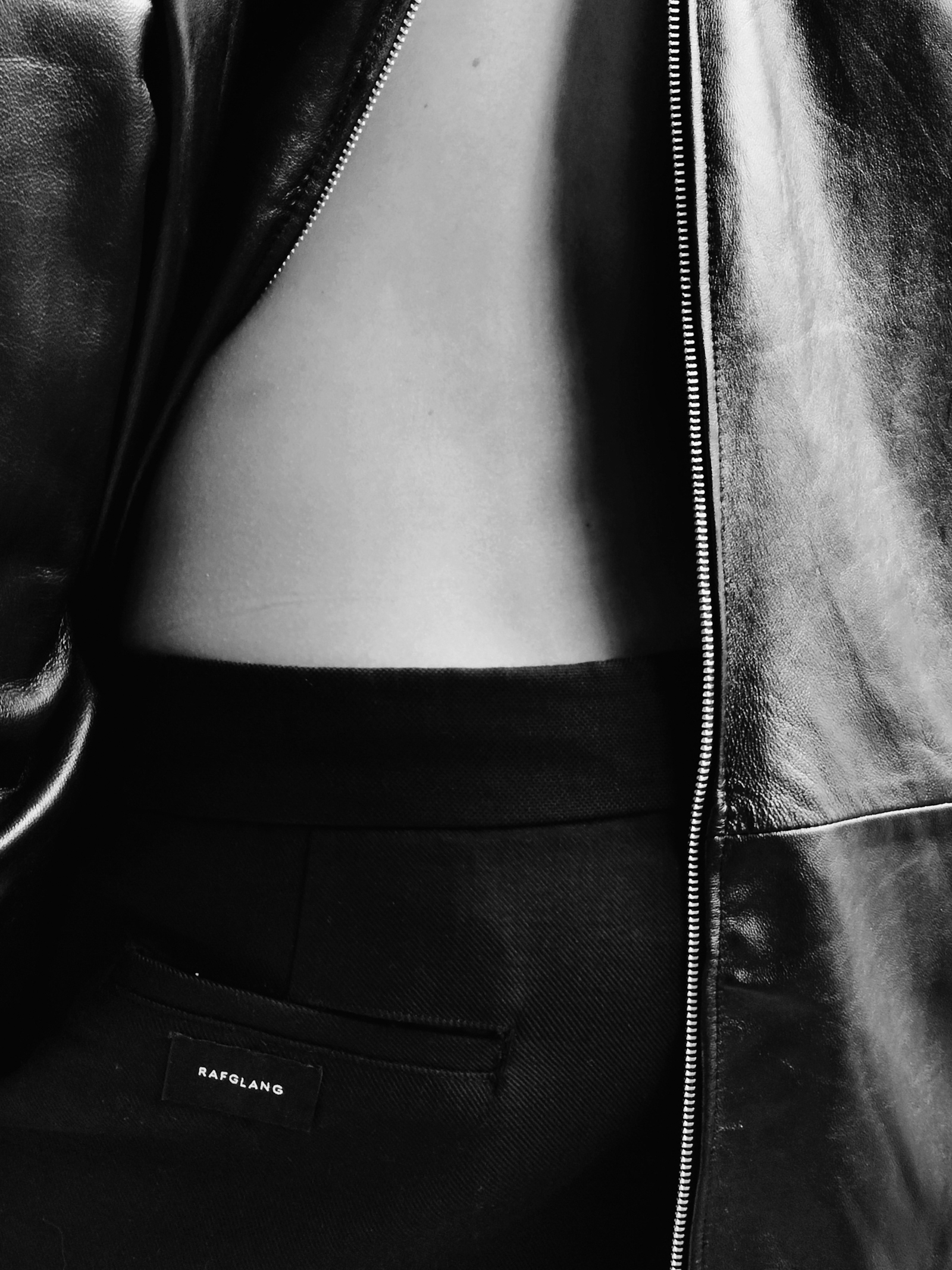 Repurposed Leather Coat No. 1; Reengineered Twill Trousers No. 1. Courtesy of Rafglang