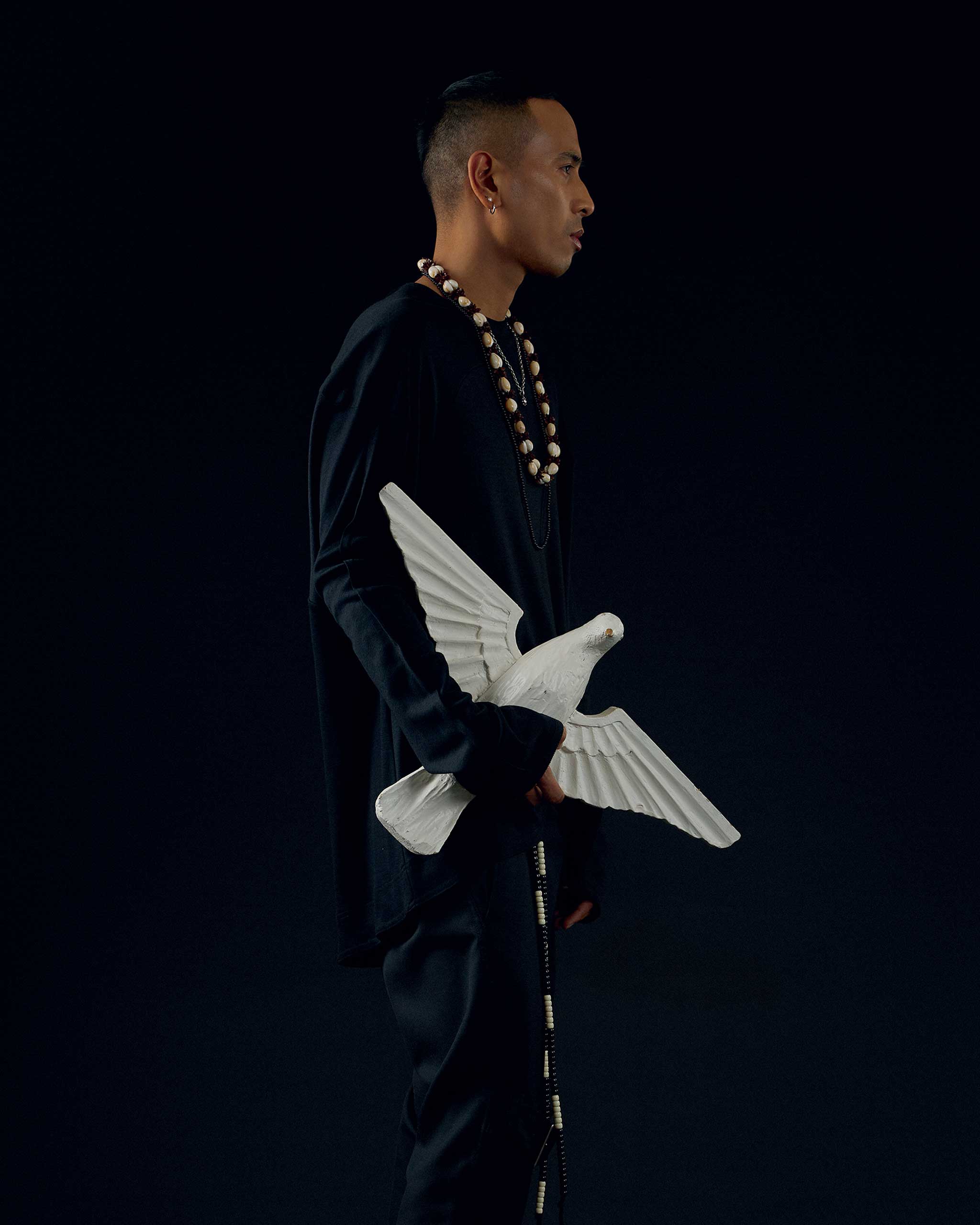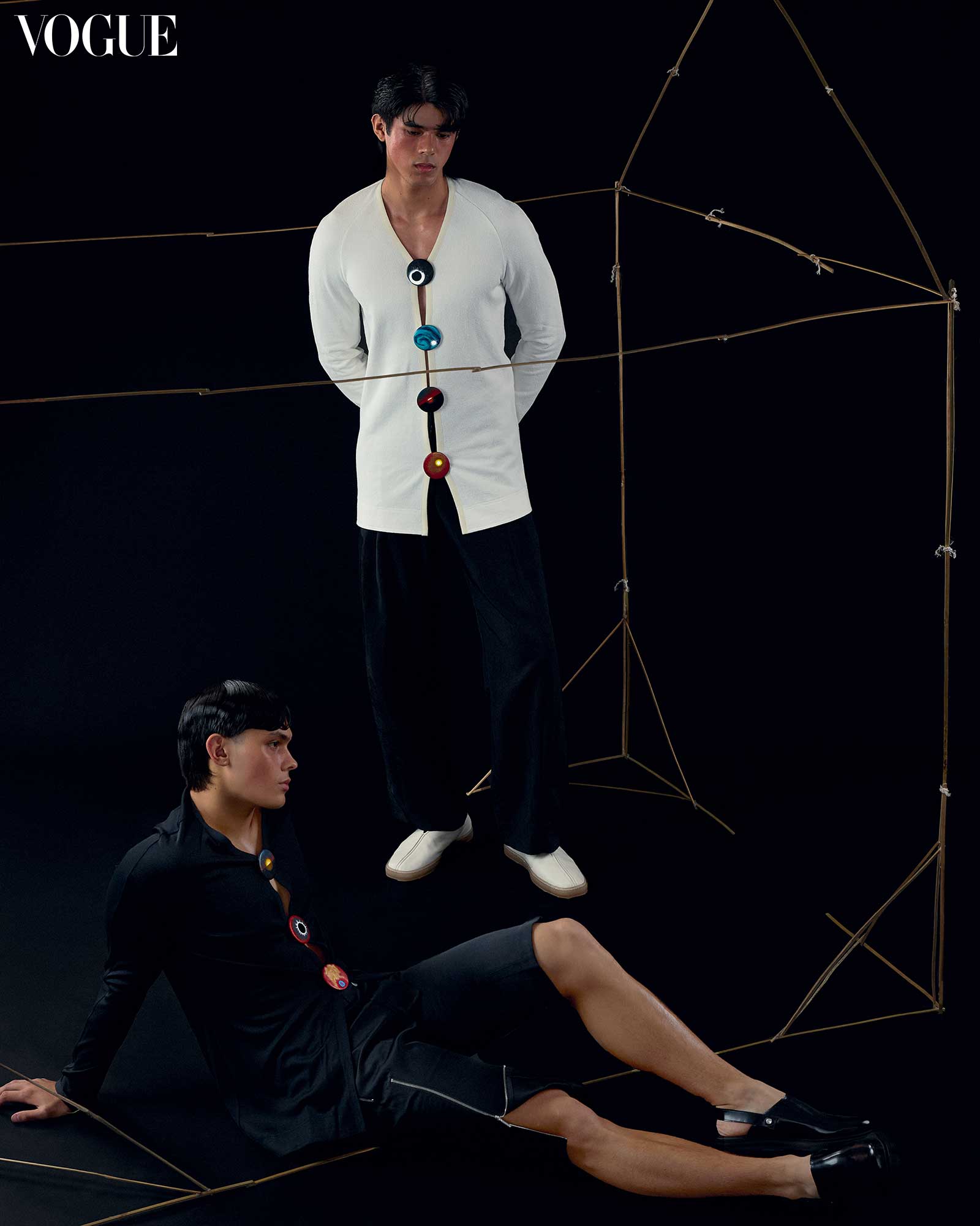 By SAM POTENCIANO. Photographs by KOJI ARBOLEDA. Styling by ANZ HIZON. Makeup: Noel Inocencio. Hair: Carlo Roblico. Model: Aidan Palis of New Monarq Manila, Ethan Fabella of PMAP. Producer: Anz Hizon. Production Design: Migs Alcid. Nails: Extraordinail. Photographer’s Assistant: JV Rabano. Stylist’s Assistant: Anya Granados, Chelsea Sarabia, Julia Magsino, Julian Rodriguez, Kyla Chuasiaokong.