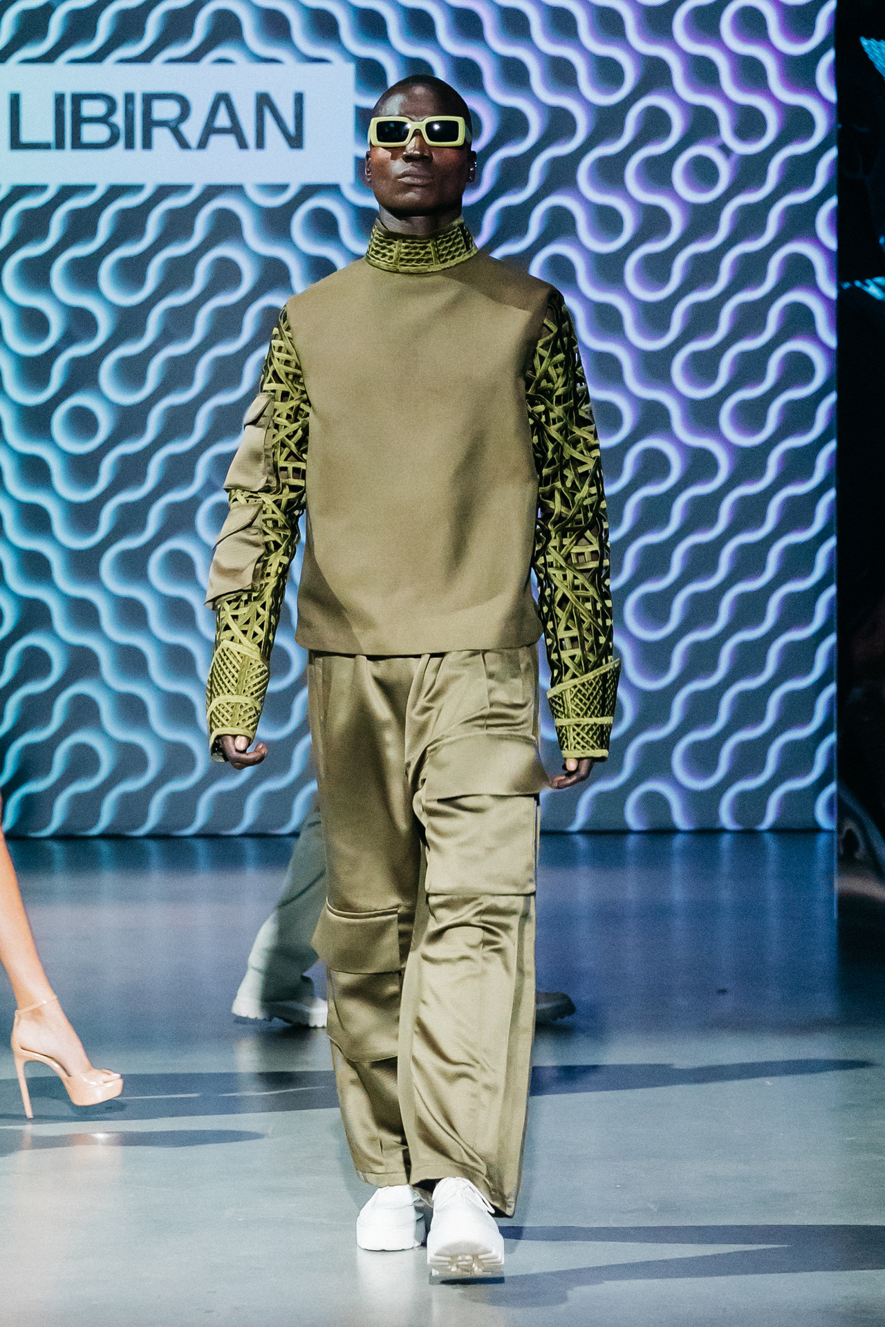 On the runway, different takes on a tailored suit were present ranging from head-to-toe eyelet looks to gem-filled cropped jackets with cut-outs all in the right places. Stepping out of his comfort zone, Libiran also explored utilitarian elements and furniture weaving infused into the olive numbers—looks that won the crowd. Ending on a Gatsby-esque note, the showstopper look of the night was an embellished co-ord with dramatic pleated sleeves paired with a voluminous cape that danced down the runway.