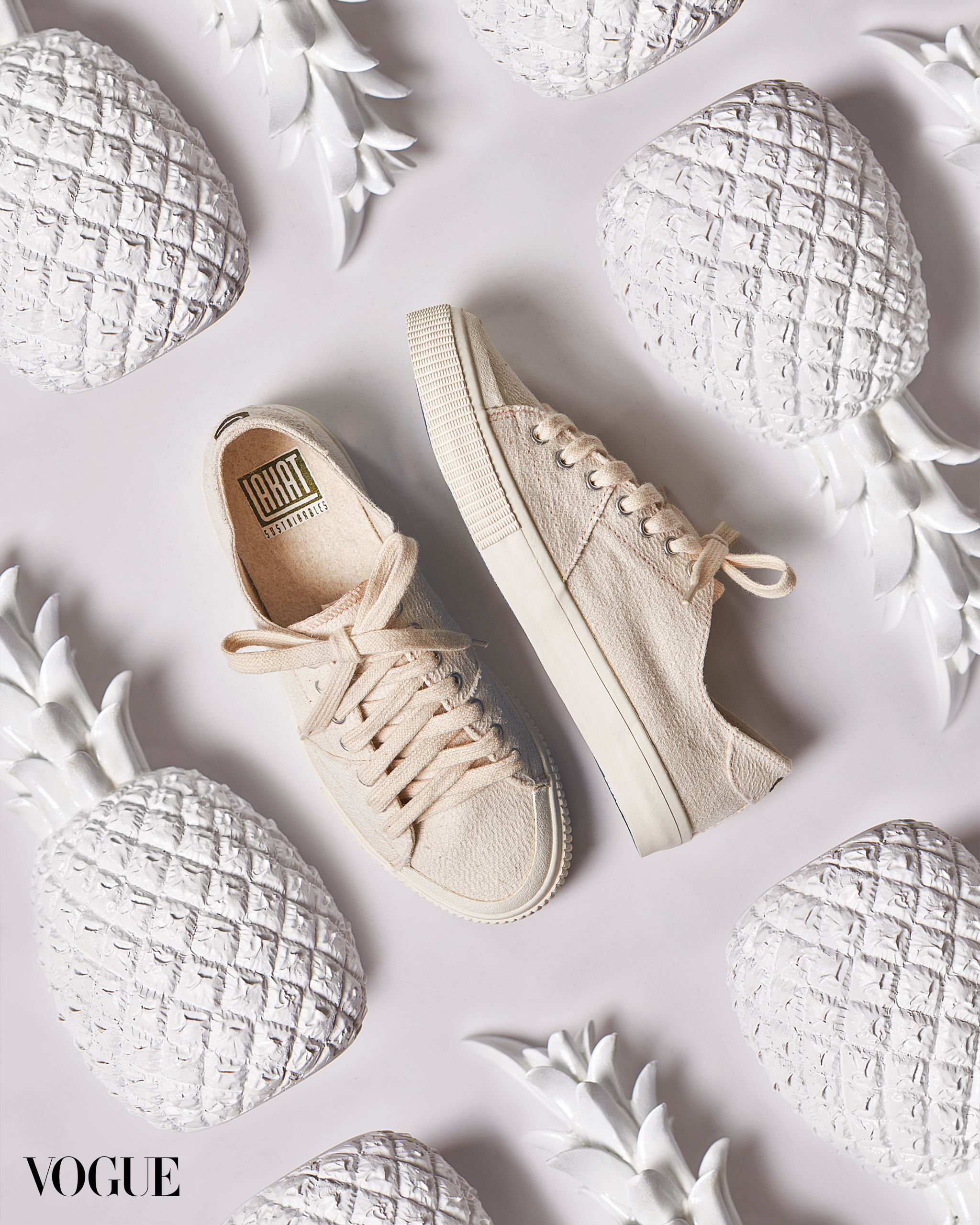 Such was the genesis of Lakat Sustainables, their eco-footwear venture launched in 2021. In Hiligaynon, a language spoken in Negros (an island south of Manila where Mike hails from), “lakat” means “to walk” or “to go.” What sets their label apart from other sneaker brands is their shoes’ sustainable composition. Lakat’s shoes are primarily made of pineapple-cotton yarns sourced from the island of Negros, with the soles composed of natural rubber farmed in Mindanao and mixed with fiber scraps that were discarded during the yarn spinning process.
