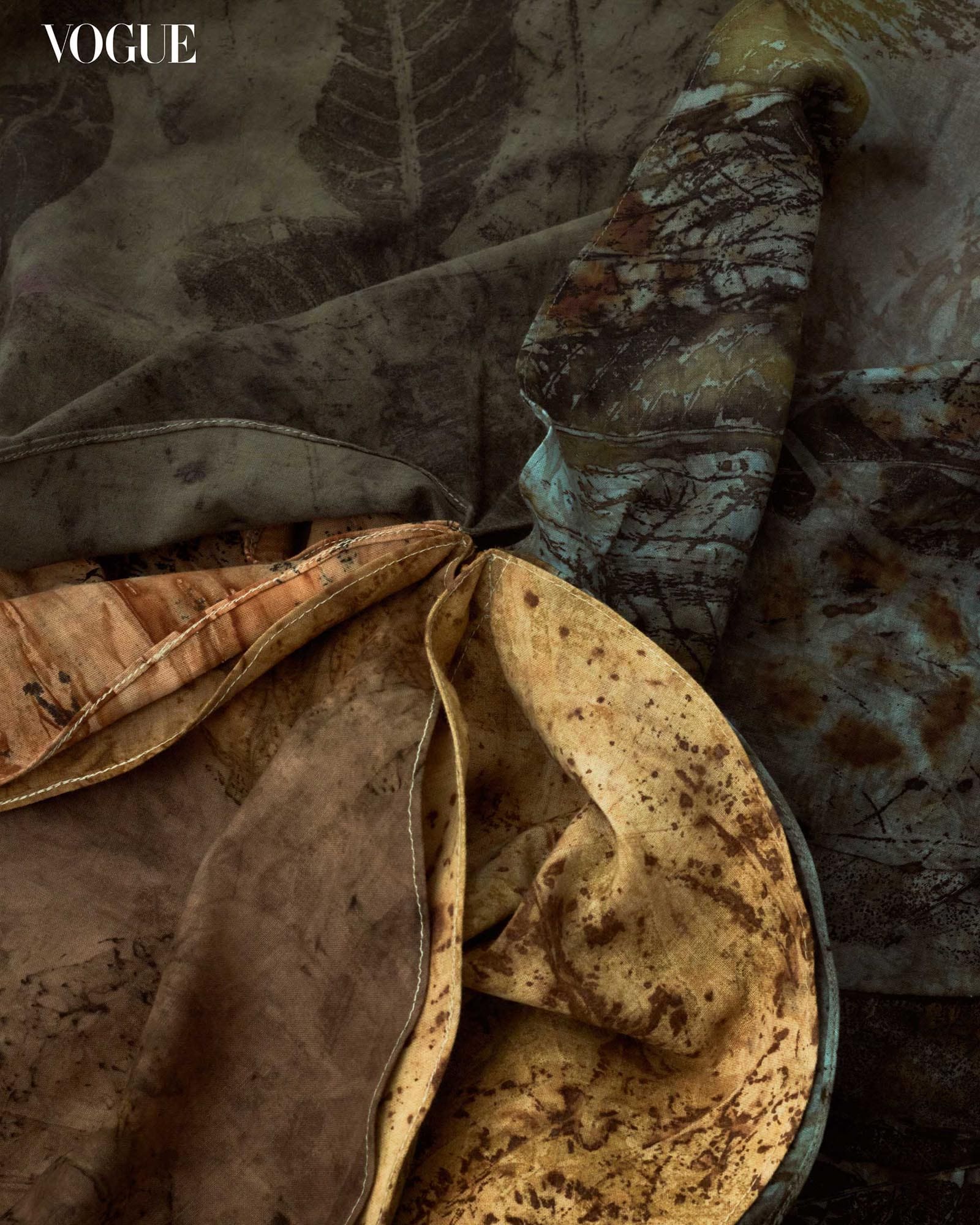 Earthbound’s seed can be traced to Javier, who began ecoprinting (the act of making markings on textiles using dyes from natural materials) two years ago when she discovered the tapestries of Australian visual artist India Flint. Trying ecoprinting herself in her Batangas studio surrounded by gardens and a small farm, Javier was excited about the results and its potential applications in our everyday lives. “We often feel pleasure, that instant gratification upon buying new clothes, but never the more long-lasting joy of being a part in the creation of our clothes,” she narrates. “I knew then that I wanted to mount a show that would involve a collaboration with a designer who is open to designing garments based on our prints.”