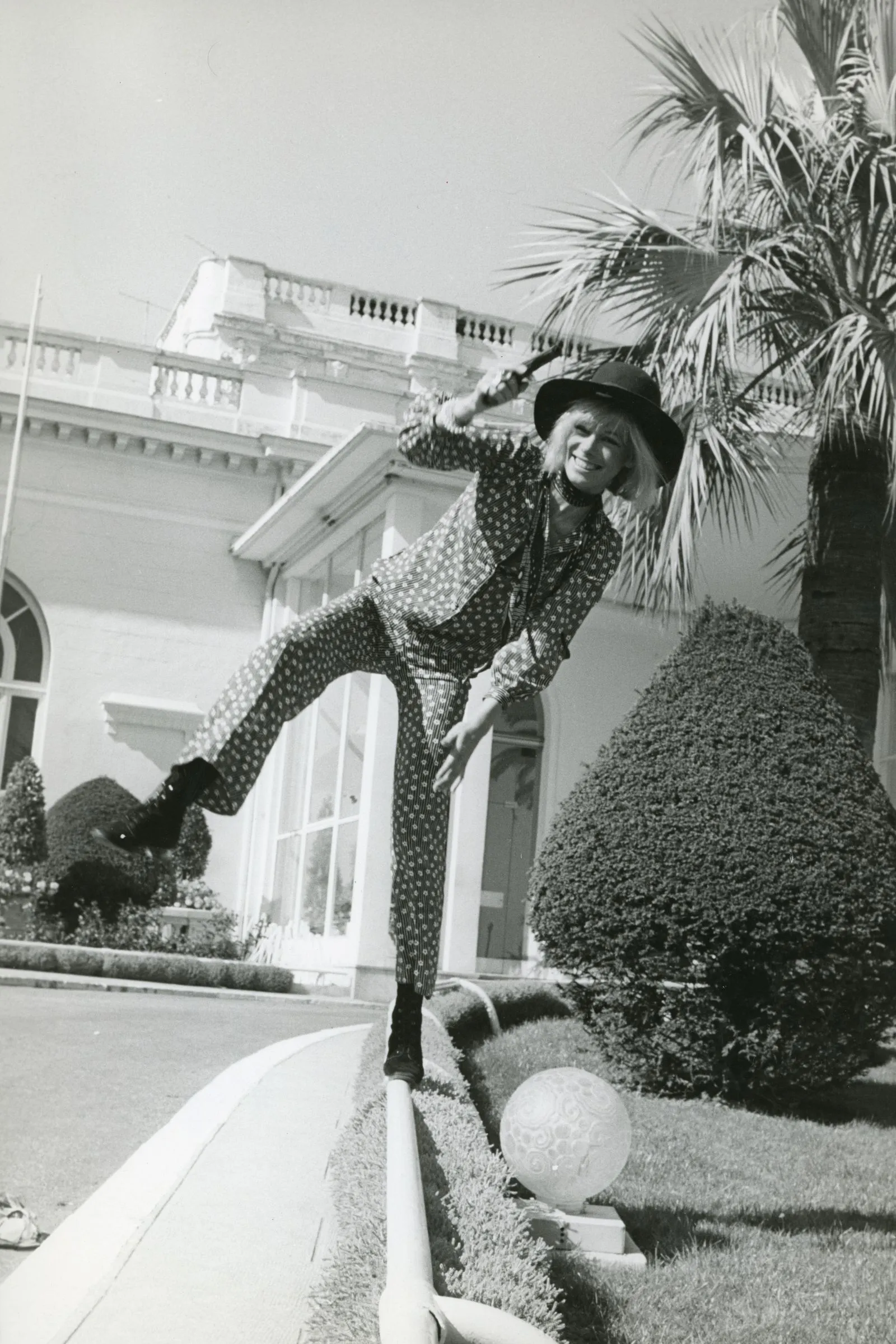 There was Juliette Gréco during her Saint-Germain-des-Prés days with Miles Davis—there’s a very simple black look which references that. The silhouette is so pure, it’s almost shocking in the show. There’s also a reference to Capucine in The Pink Panther, with this retro, ’70s, brocade Huishan Zhang coat. And there’s some ’70s Anita Pallenberg in there, with the printed jumpsuits.