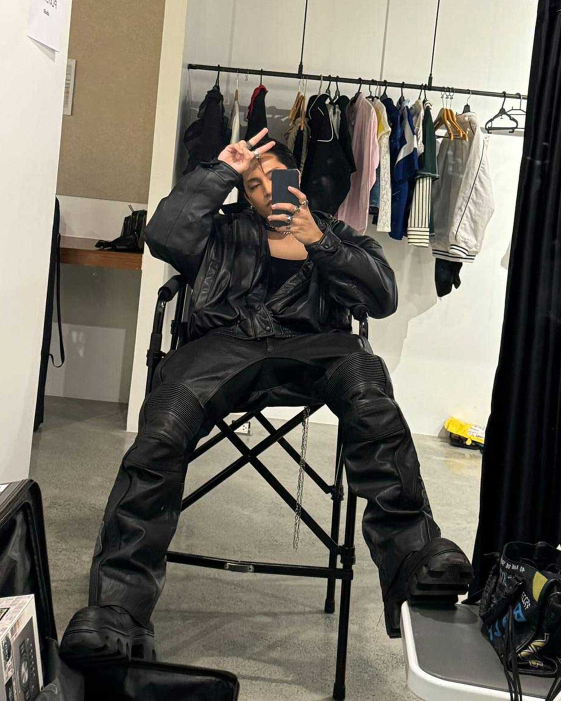 But when he performs as Felip, he explores a darker, more experimental sense of style, gravitating toward leather pieces. “When you’re with a group, you’re expected to dress at least similar,” he explains. “It’s not that I wanted to create a direct separation [with those identities,] but the way I dress as Felip is how I personally like to style myself.”