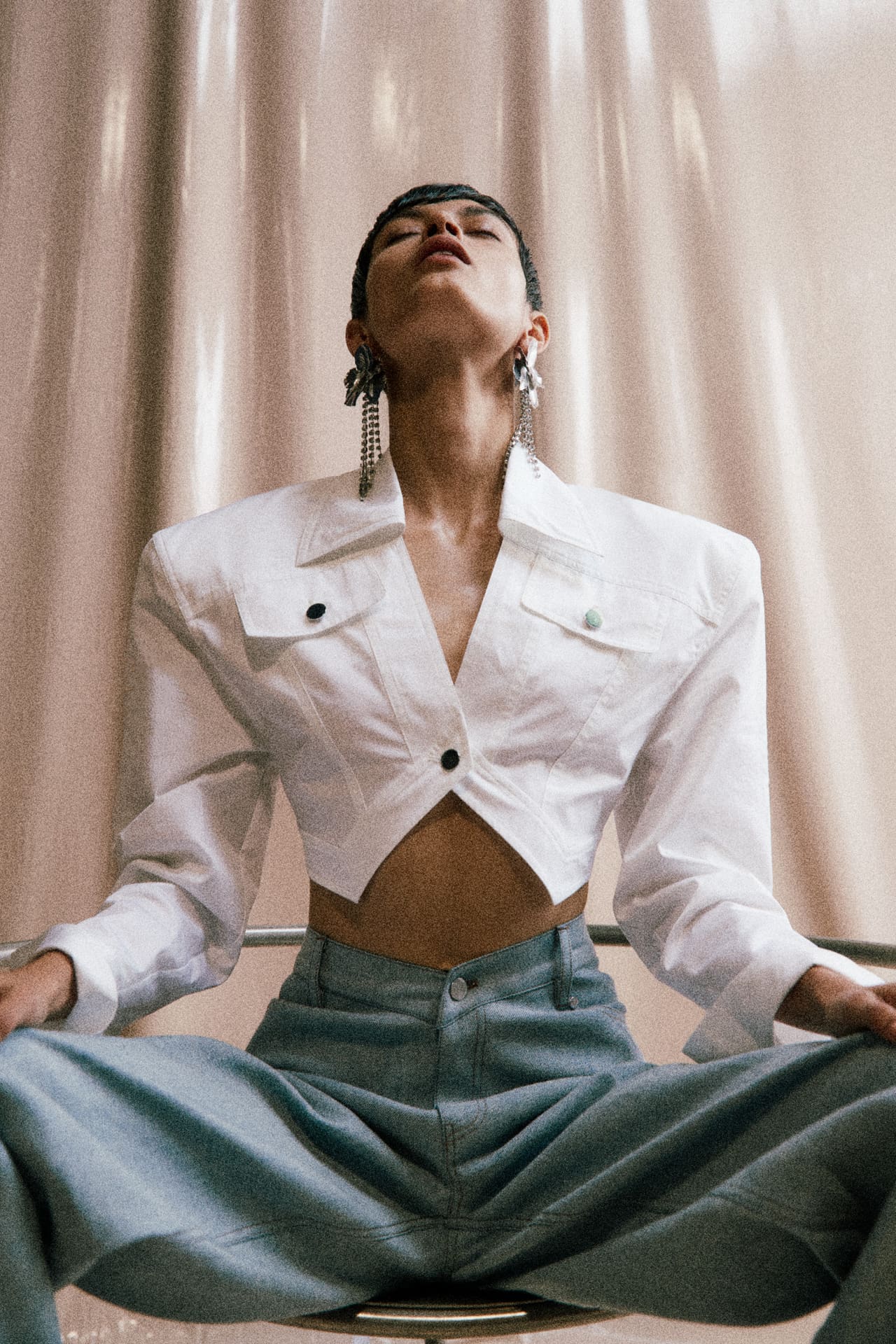 The designer also enjoys pairing contrasting elements like softness and sharpness, sensuality and comfort, and masculinity and femininity.