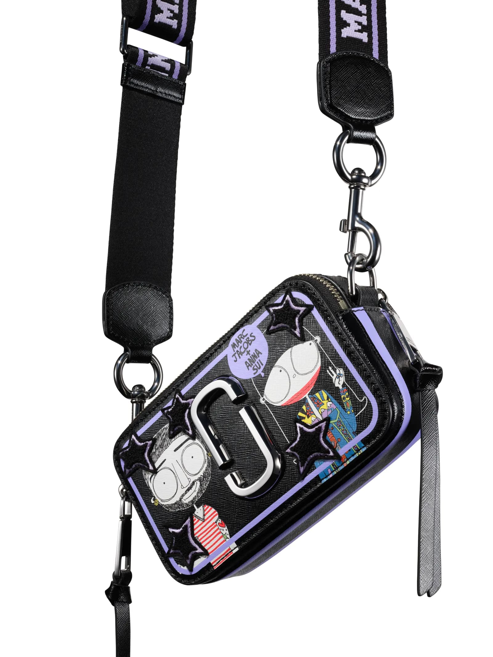 Marc Jacobs’s namesake label is celebrating its 40th anniversary in 2024, and the designer has embarked on a year-long collaboration series. Last month, he dropped a collaboration with Pat McGrath on a classic red lipstick housed in McGrath’s sleek lipstick tube, emblazoned with Jacobs’s familiar logo, that took us back to the good old days of Marc Jacobs Beauty (IYKYK). Now, Jacobs has called upon another longtime friend, Anna Sui, for a special capsule collection that includes his signature Snapshot Bag decorated with “Miss and Mister Marc” illustrations in Sui’s signature colors purple and black, along with a varsity jacket emblazoned with their initials and the year 1984 when the brand was founded.