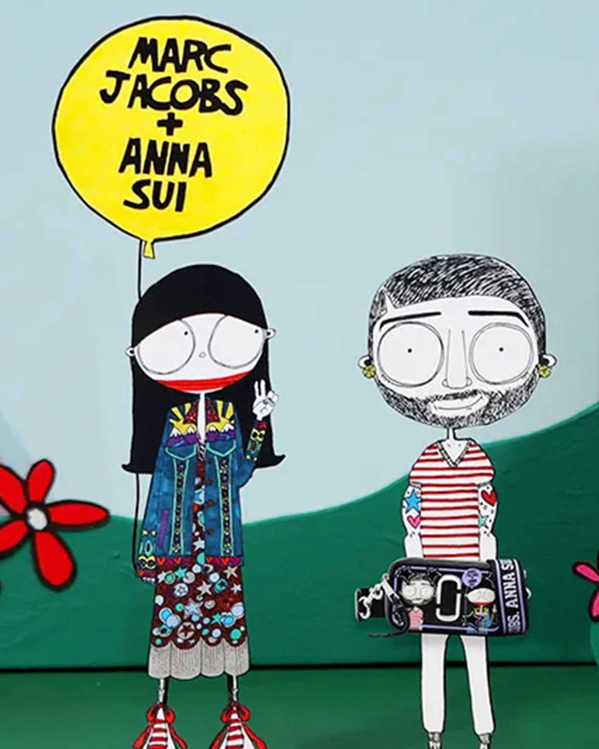 This isn’t the first time the two have collaborated; they first put their designer minds together in 2018 for a small capsule titled “Marc & Anna” that featured a line of t-shirts, sneakers, and keychains where the “Miss and Mister Marc” illustrations by Will Broome first debuted. (Miss and Mister Marc are, in fact, cartoon versions of the designers themselves). Last year, Sui also reissued the fairy wings from her spring 1997 collection as part of Jacobs’s Heaven line.
