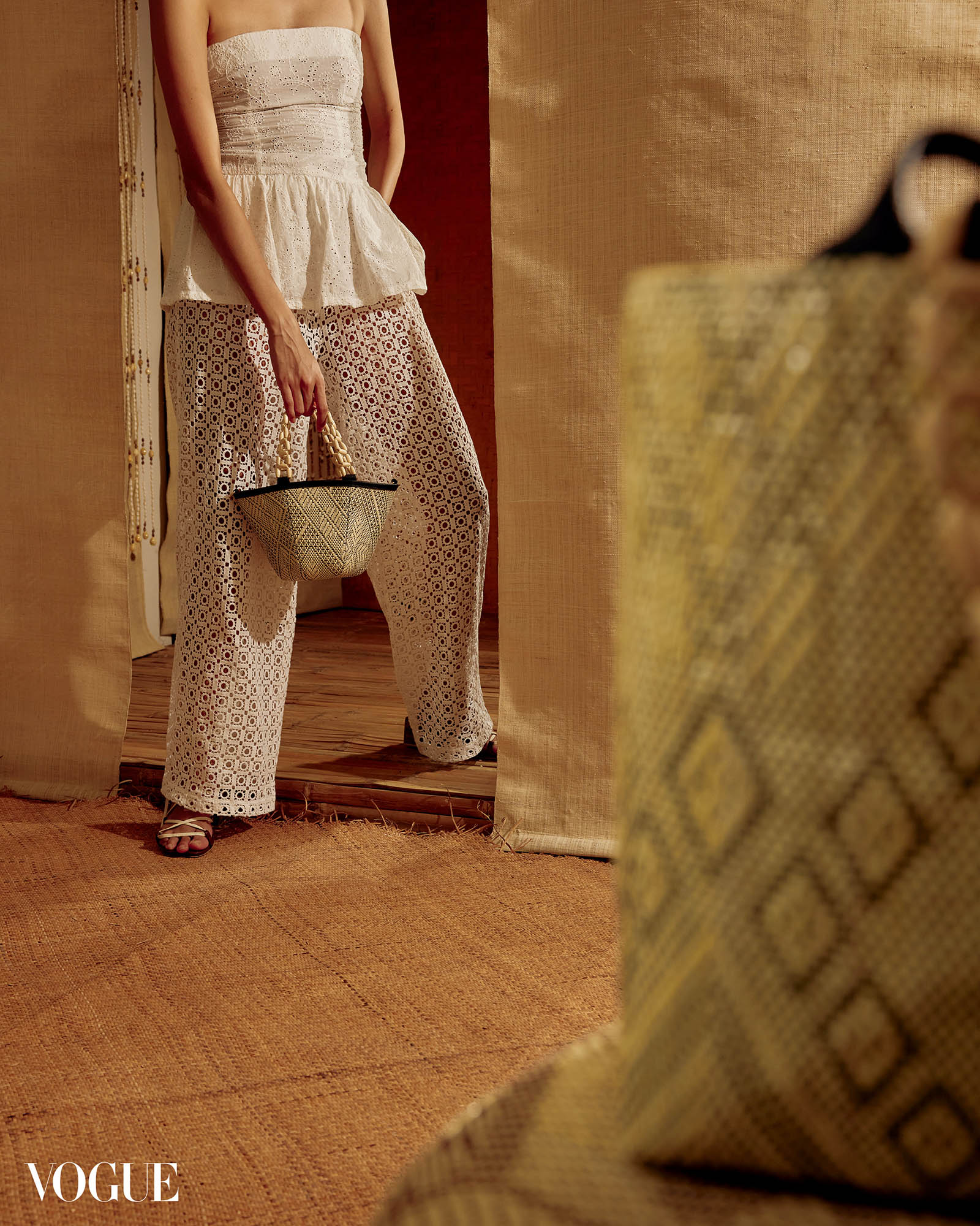 “Almost everything was organic,” the designer says of the brand’s inception. Back home from a Parsons fashion marketing course in New York, Cara spent her summer playing with banig, which she was exposed to early in her youth. “I can’t remember if it was grade school or high school. I was just always fixated on it, then I didn’t really know what exactly I wanted to do with it. But it stayed in my head for a really long time.”