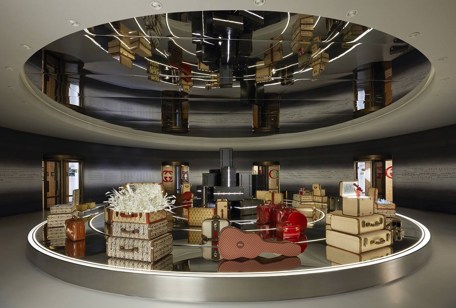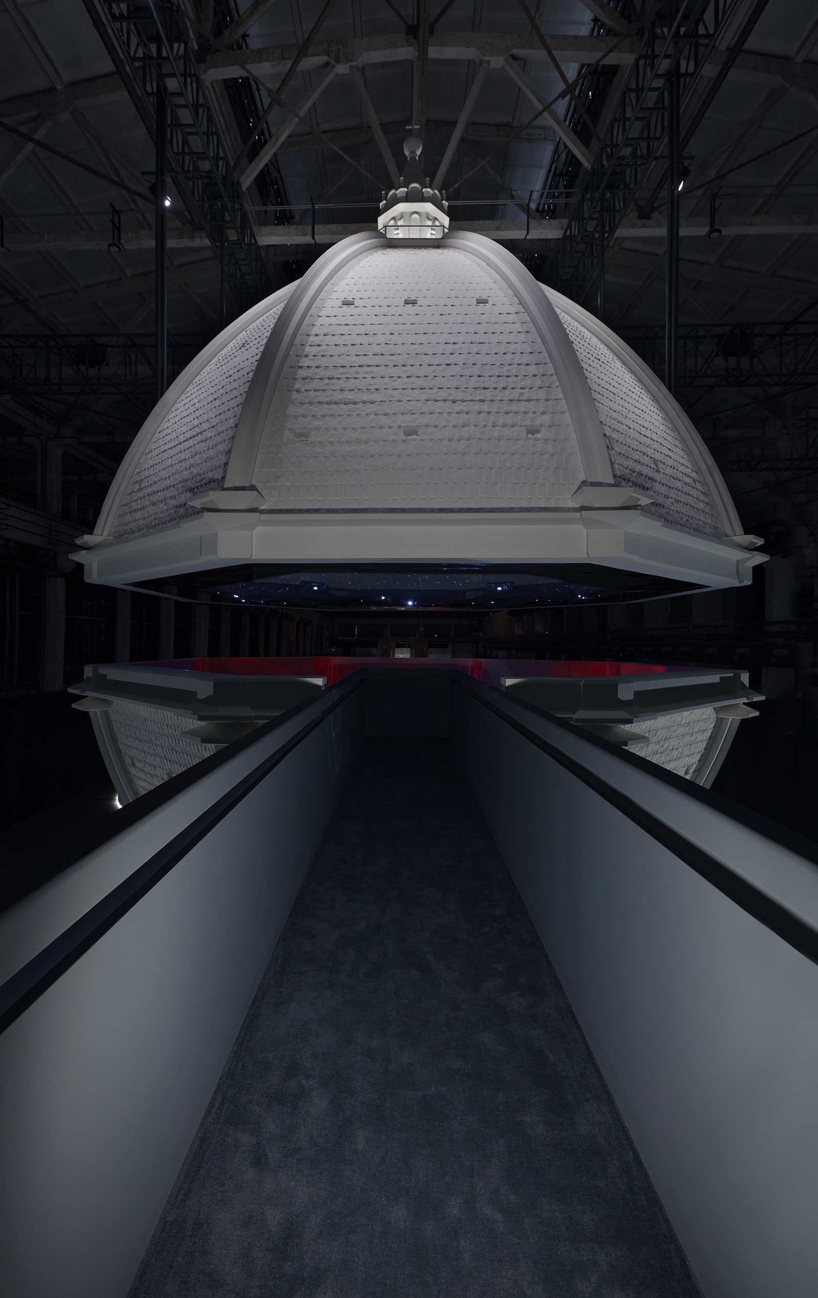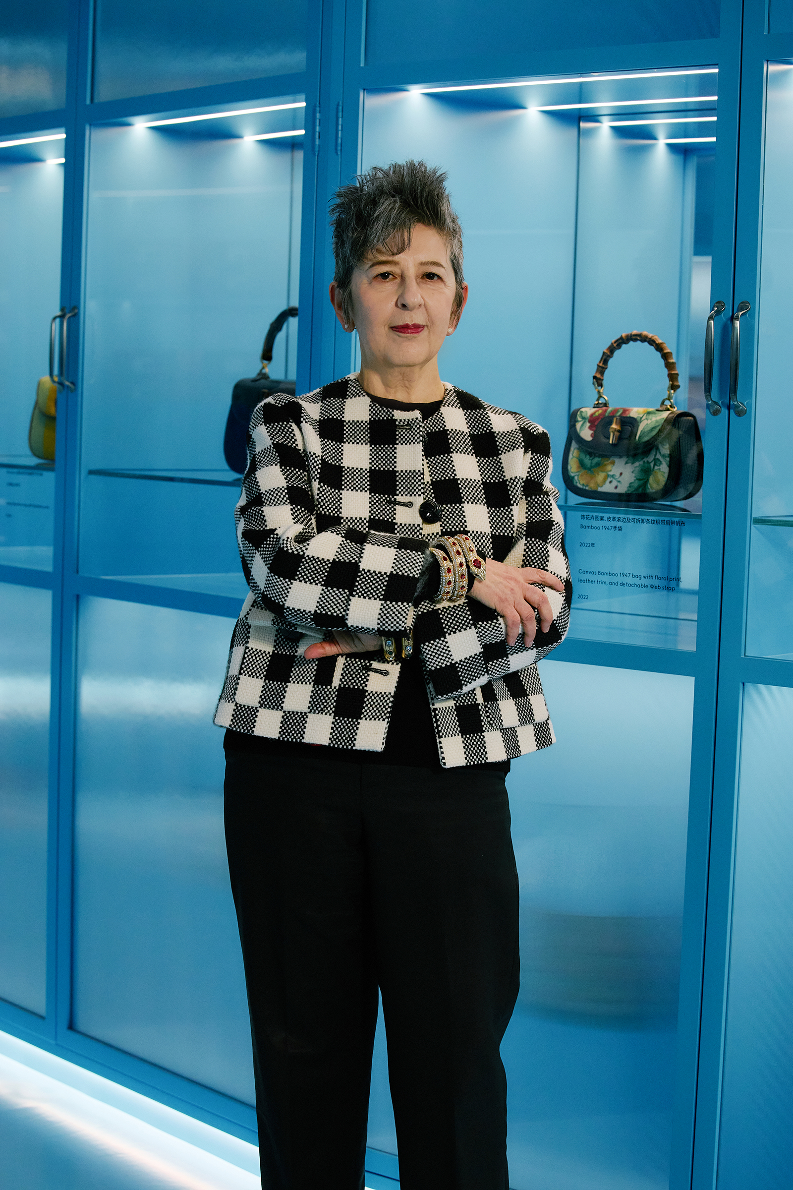 The cavernous space in the Westbund Art Center in Shanghai, China used to be an airplane factory. For a time, it will attempt to house the story of Gucci through a sprawling exhibit that traces the fashion house’s 102-year history. Called Gucci Cosmos, it features artist Es Devlin’s immersive, large-scale sculptures and fashion theorist, curator, and critic Maria Luisa Frisa’s selects from the brand’s archives in Florence.