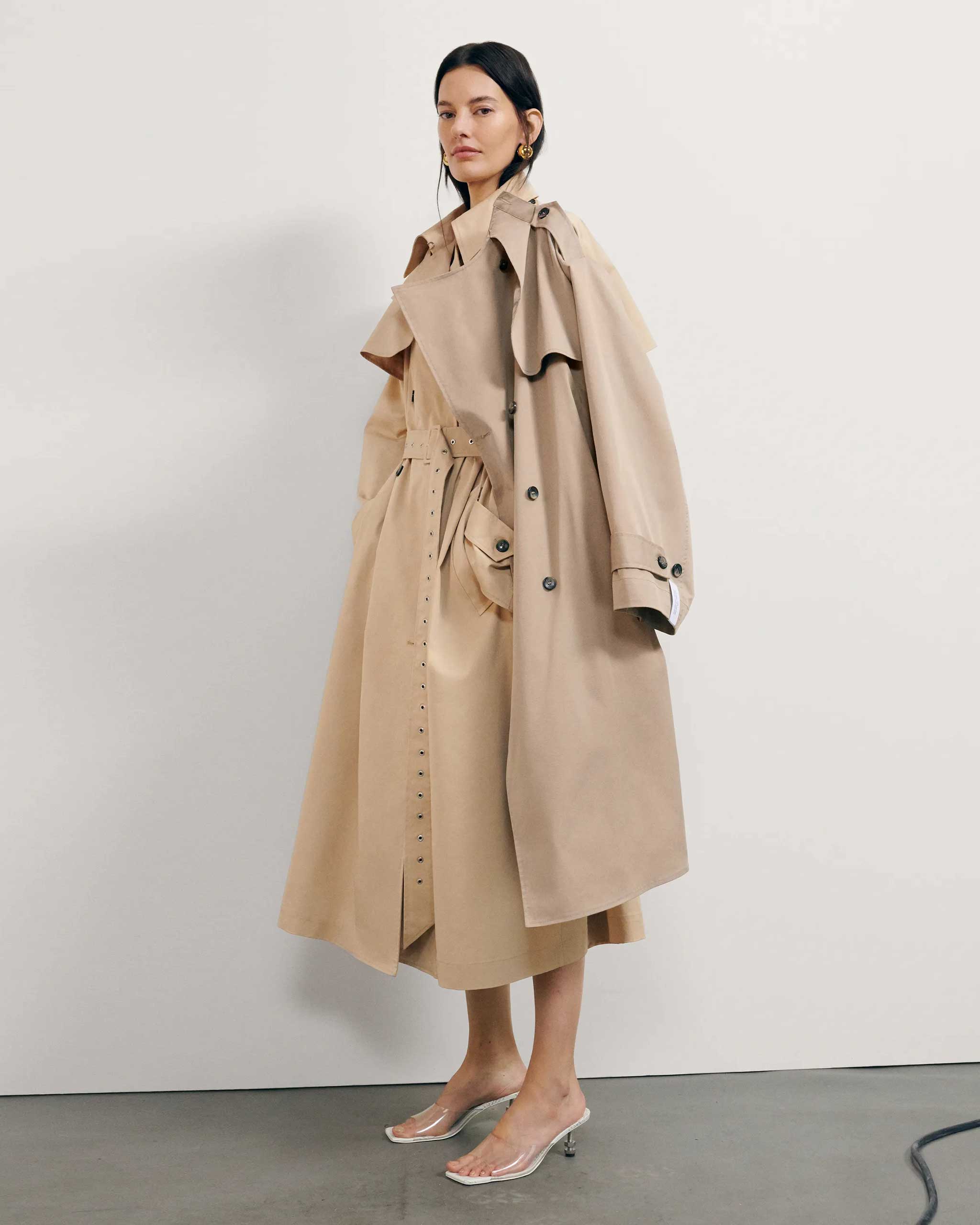 Adornments, meanwhile, remain at a minimum, but Hwang’s double belt motif plays a significant role in the edit, cinching everything from knife-pleat trousers (a Vogue favourite from the collection) to voluminous coats. You will also find silver studs splashed across dresses and jackets alike, offering the collection a subtle, punk-inspired twist that keeps it from slipping into the ubiquitous “quiet luxury” category.