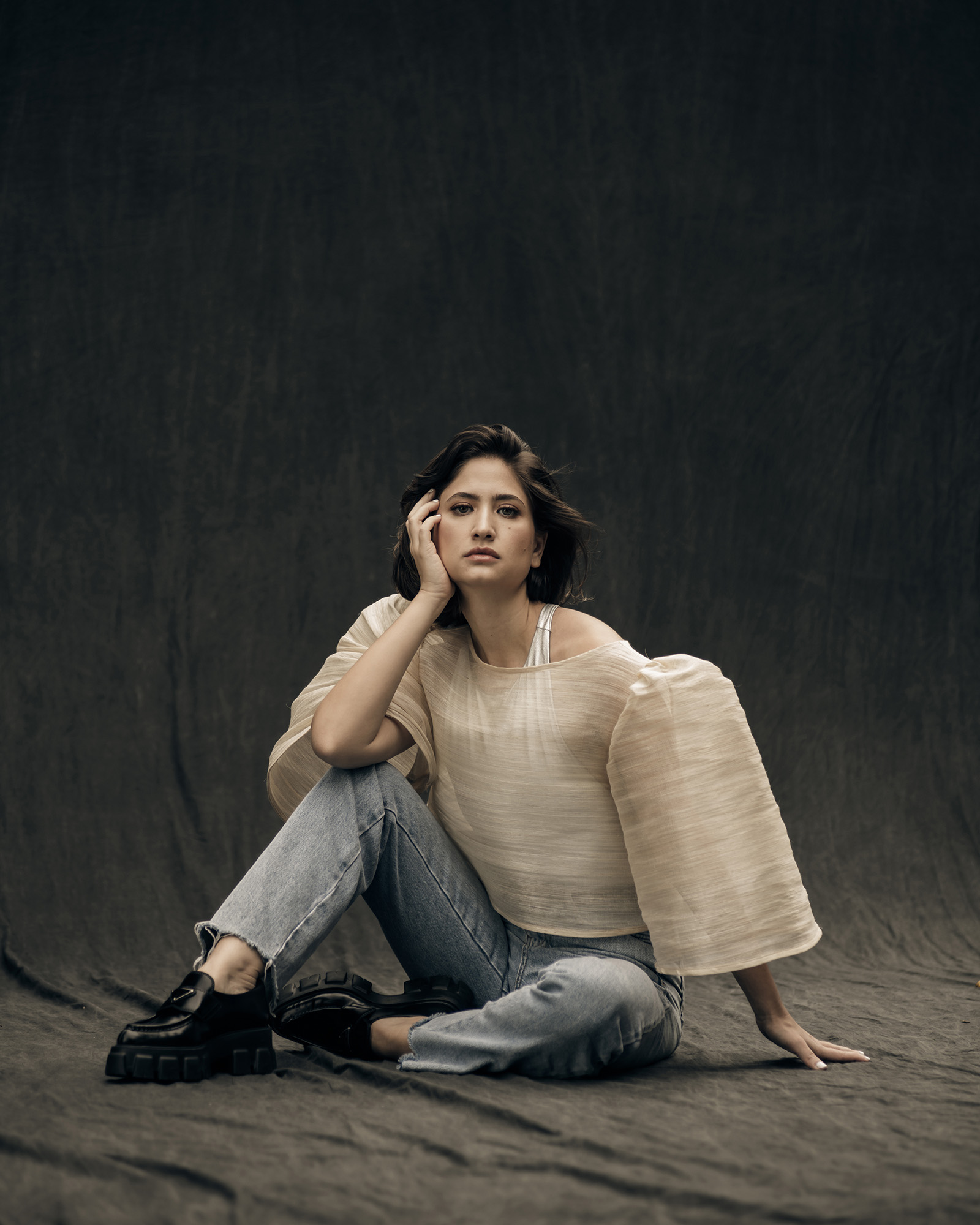 Another favorite from the shoot is an oversized banaca top reminiscent of the kimona. Prieto paired it with jeans and chunky Prada Monolith loafers. It was one of the most casual looks Rocha-Araneta wore for the shoot and the most memorable.