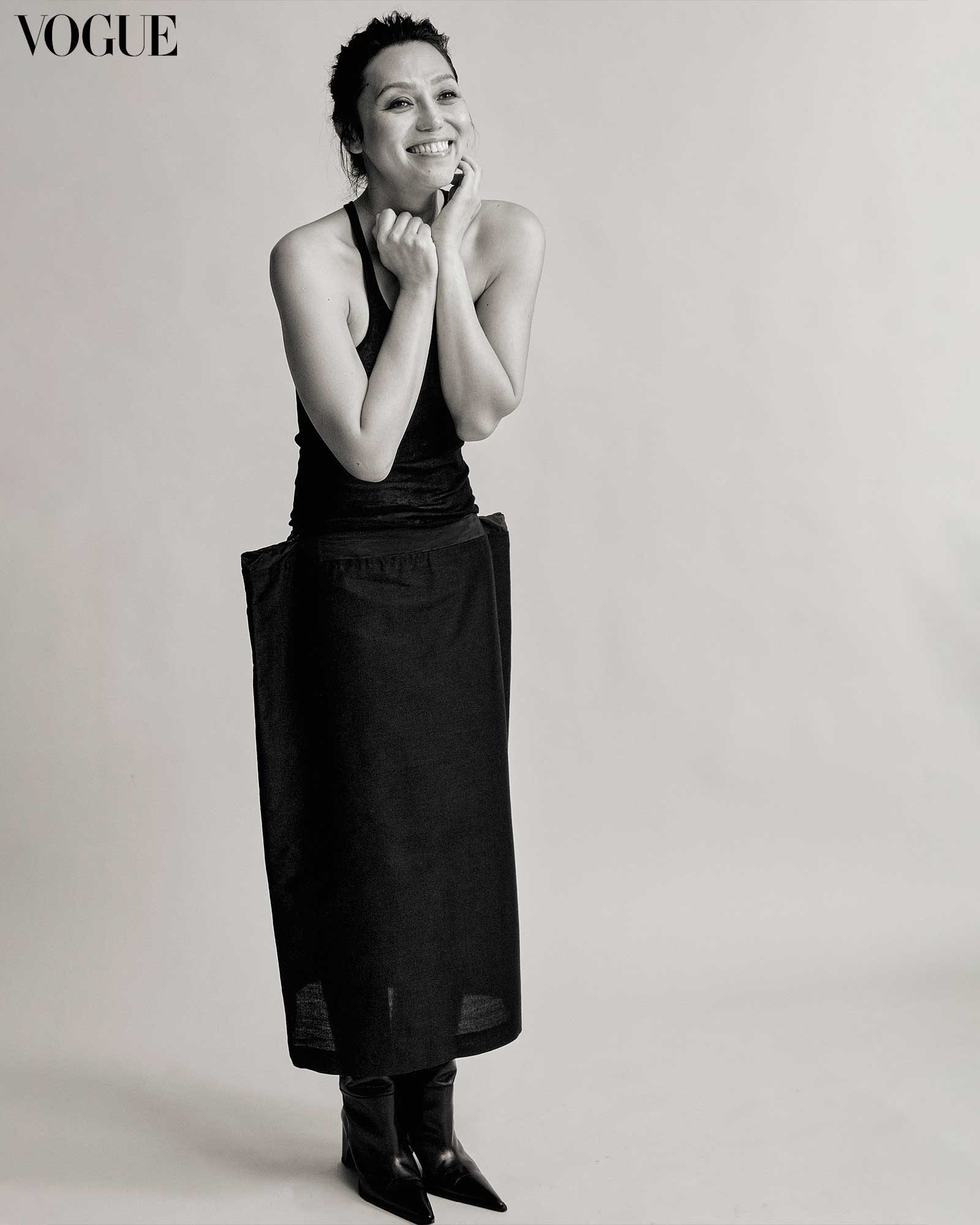 In front of fellow filmmaker Kim Cam Jones’s lens, she moved with ease in sharply piqued archival Issey Miyake and Jacquemus separates and free-wheeled in gauzy Ana la O’ and Alaïa layers. There was a power and self-assuredness in each stance she assumed, even when she allowed herself a laugh or two. This was the intention behind the looks Vogue Philippines fashion director Pam Quiñones and fashion assistant Neil de Guzman assembled: a sartorial consideration of Isabel’s quiet confidence.