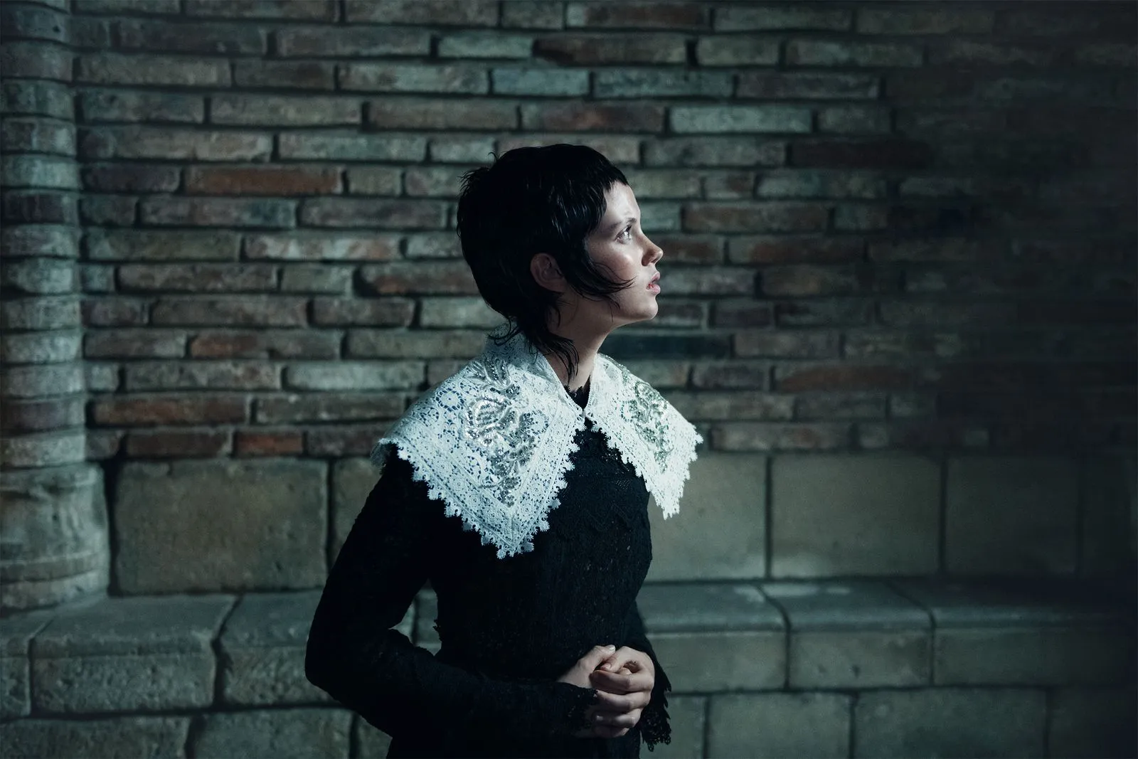 In this story: hair, Shay Ashual; makeup, Mark Carrasquillo; manicurist, Deborah Lippmann; tailor, Lucy Falck. Director of Photography: Kenny Suleimanagich. Assistant Camera: Liam Lawlor. Special thanks to Bazmark: Baz Luhrmann, Catherine Martin, Schuyler Weiss, Fletcher Donohue, Jack Flynn, Chris Tangney, A’mi Gray, and MJ Coy. Location: The Met Cloisters. Produced by Boom Productions Inc.